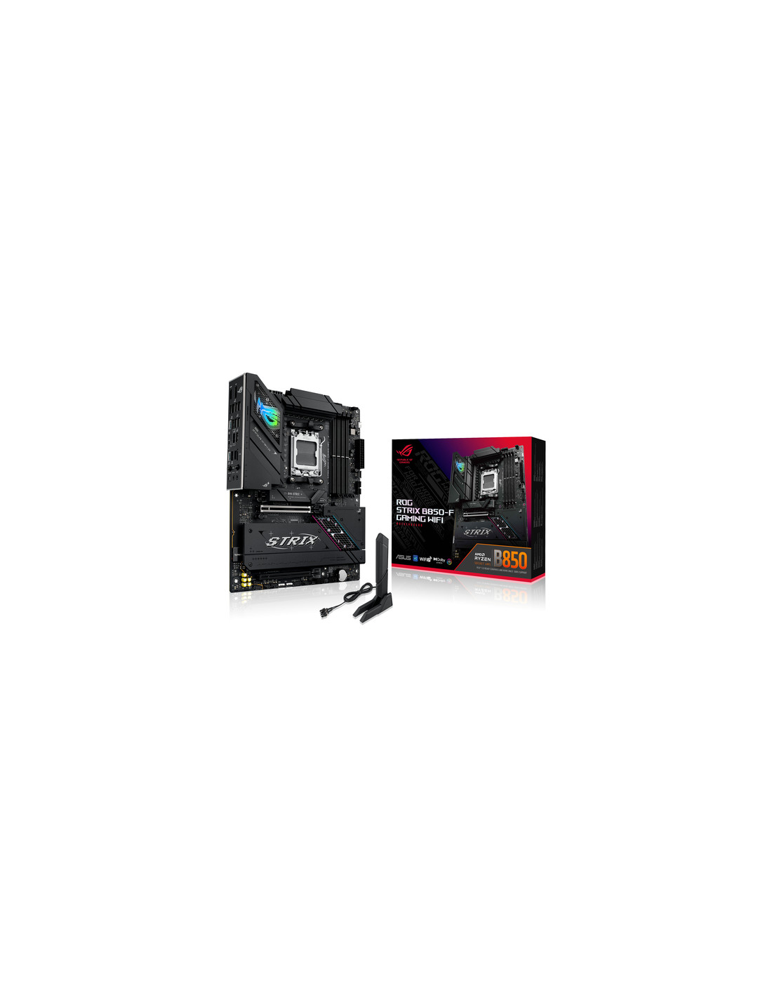 ASUS ROG STRIX B850-F GAMING WIFI. Produttore processore: AMD, Presa per processore: Socket AM5, Processori compatibili: AMD Ryzen 7000 Series, AMD Ryzen 8000 Series, AMD Ryzen 9000 Series. Tipi di memoria supportati: DDR5-SDRAM, RAM massima supportata: 192 GB, tipo di slot di memoria: DIMM. Interfacce dell'unità di archiviazione supportate: M.2, SATA III, Tipi di unità di archiviazione supportate: HDD & SSD, Livelli RAID: 0, 1, 5, 10. Risoluzione massima: 7680 x 4320 Pixel. Tipo di interfaccia Ethernet: 2.5 Gigabit Ethernet, Wi-Fi standard: Wi-Fi 7 (802.11be), Standard Wi-Fi: Wi-Fi 7 (802.11be)