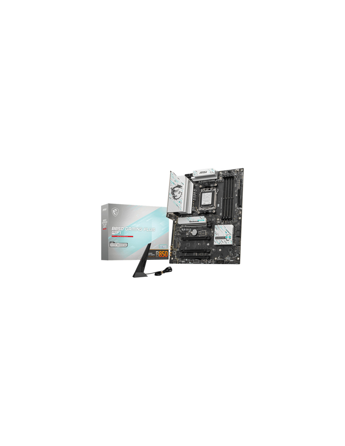 MSI B850 GAMING PLUS WIFI. Produttore processore: AMD, Presa per processore: Socket AM5, Processori compatibili: AMD Ryzen 7000 Series, AMD Ryzen 8000 Series, AMD Ryzen 9000 Series. Tipi di memoria supportati: DDR5-SDRAM, RAM massima supportata: 256 GB, tipo di slot di memoria: DIMM. Interfacce dell'unità di archiviazione supportate: M.2, Micro SATA III, Tipi di unità di archiviazione supportate: HDD & SSD, Livelli RAID: 0, 1. Tipo di interfaccia Ethernet: 5 Gigabit Ethernet, Wi-Fi standard: Wi-Fi 7 (802.11be), Standard Wi-Fi: 802.11a, 802.11b, 802.11g, Wi-Fi 4 (802.11n), Wi-Fi 5 (802.11ac), Wi-Fi 6 (802.11ax), Wi-Fi 6E.... Componente per: PC, Fattore di forma scheda madre: ATX, Famiglia di chipset per scheda madre: AMD