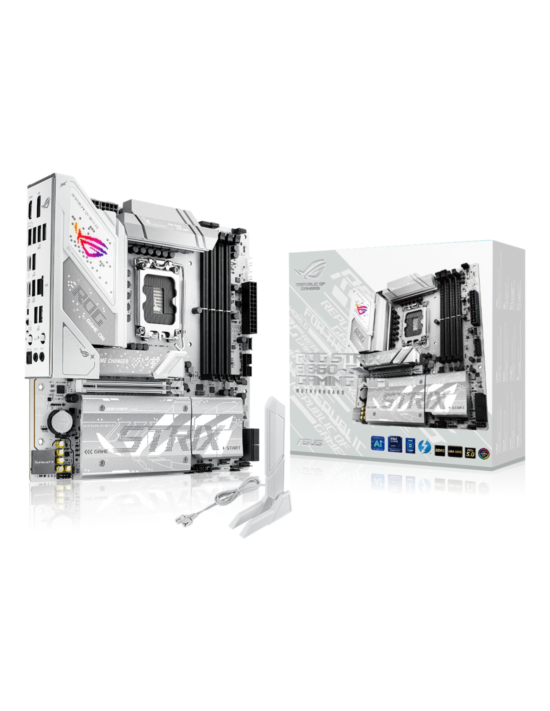ASUS ROG STRIX B860-G GAMING WIFI. Produttore processore: Intel, Presa per processore: LGA 1851 (Socket V1), Processori compatibili: Intel Core Ultra (Series 2). Tipi di memoria supportati: DDR5-SDRAM, RAM massima supportata: 256 GB, tipo di slot di memoria: DIMM. Interfacce dell'unità di archiviazione supportate: M.2, SATA III, Tipi di unità di archiviazione supportate: HDD & SSD, Livelli RAID: 0, 1, 5, 10. Tipo di interfaccia Ethernet: 2.5 Gigabit Ethernet, Wi-Fi standard: Wi-Fi 7 (802.11be). Componente per: PC, Fattore di forma scheda madre: micro ATX, Famiglia di chipset per scheda madre: Intel