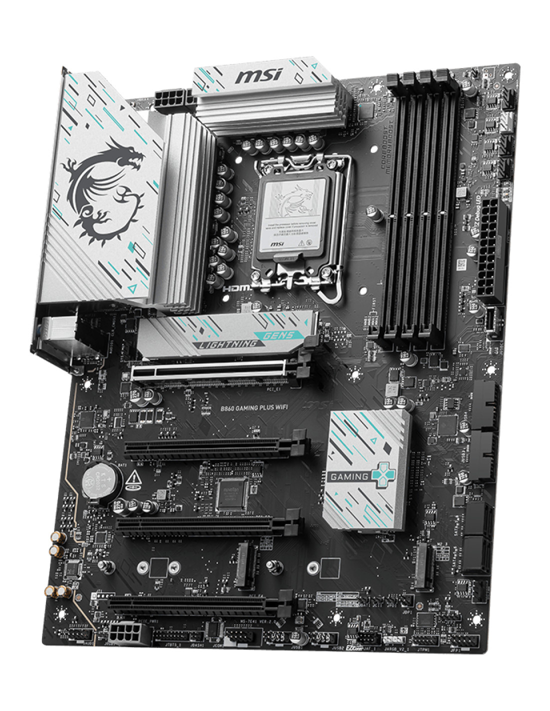 MSI B860 GAMING PLUS WIFI. Produttore processore: Intel, Presa per processore: LGA 1851 (Socket V1), Processori compatibili: Intel Core Ultra (Series 2). Tipi di memoria supportati: DDR5-SDRAM, RAM massima supportata: 256 GB, tipo di slot di memoria: DIMM. Interfacce dell'unità di archiviazione supportate: M.2, Micro SATA III, Tipi di unità di archiviazione supportate: HDD & SSD, Livelli RAID: 0, 1, 5, 10. Tipo di interfaccia Ethernet: 5 Gigabit Ethernet, Wi-Fi standard: Wi-Fi 7 (802.11be), Standard Wi-Fi: 802.11a, 802.11b, 802.11g, Wi-Fi 4 (802.11n), Wi-Fi 5 (802.11ac), Wi-Fi 6 (802.11ax), Wi-Fi 6E.... Componente per: PC, Fattore di forma scheda madre: ATX, Famiglia di chipset per scheda madre: AMD