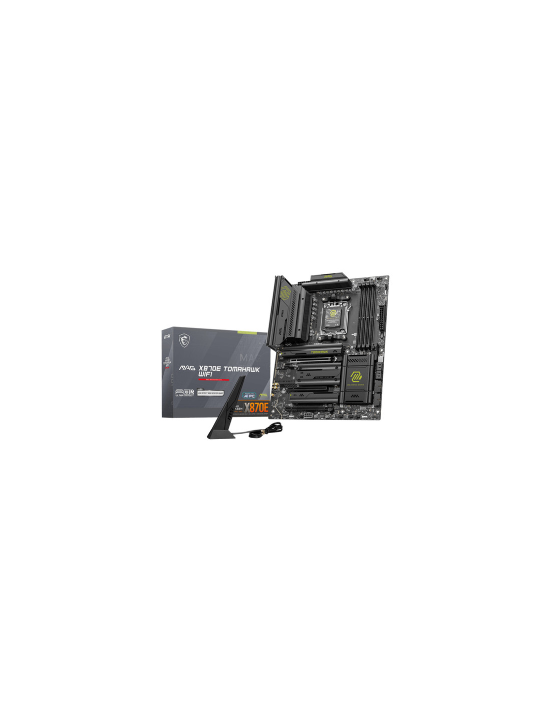 MSI MAG X870E TOMAHAWK WIFI. Produttore processore: AMD, Presa per processore: Socket AM5, Processori compatibili: AMD Ryzen 7000 Series, AMD Ryzen 8000 Series, AMD Ryzen 9000 Series. Tipi di memoria supportati: DDR5-SDRAM, RAM massima supportata: 256 GB, tipo di slot di memoria: DIMM. Interfacce dell'unità di archiviazione supportate: M.2, SATA III, Tipi di unità di archiviazione supportate: HDD & SSD. Tipo di interfaccia Ethernet: 5 Gigabit Ethernet, Controller LAN: Realtek RTL8126, Wi-Fi standard: Wi-Fi 7 (802.11be). Componente per: PC, Fattore di forma scheda madre: ATX, Famiglia di chipset per scheda madre: AMD