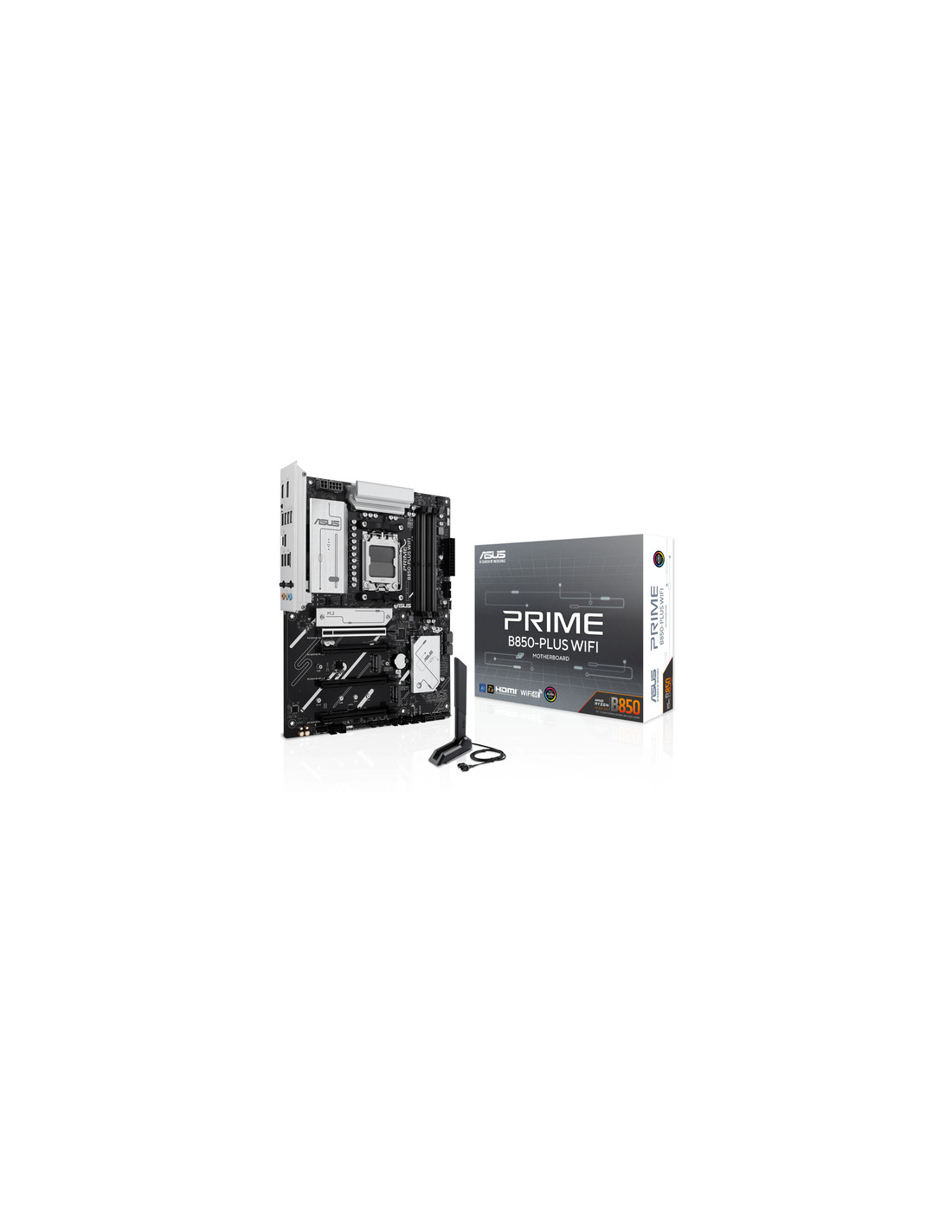ASUS PRIME B850-PLUS WIFI. Produttore processore: AMD, Presa per processore: Socket AM5, Processori compatibili: AMD Ryzen 7000 Series, AMD Ryzen 8000 Series, AMD Ryzen 9000 Series. Tipi di memoria supportati: DDR5-SDRAM, RAM massima supportata: 256 GB, tipo di slot di memoria: DIMM. Interfacce dell'unità di archiviazione supportate: M.2, SATA III, Tipi di unità di archiviazione supportate: HDD & SSD, Livelli RAID: 0, 1, 5, 10. Tipo di interfaccia Ethernet: 2.5 Gigabit Ethernet, Wi-Fi standard: Wi-Fi 6E (802.11ax). Componente per: PC, Fattore di forma scheda madre: ATX, Famiglia di chipset per scheda madre: AMD
