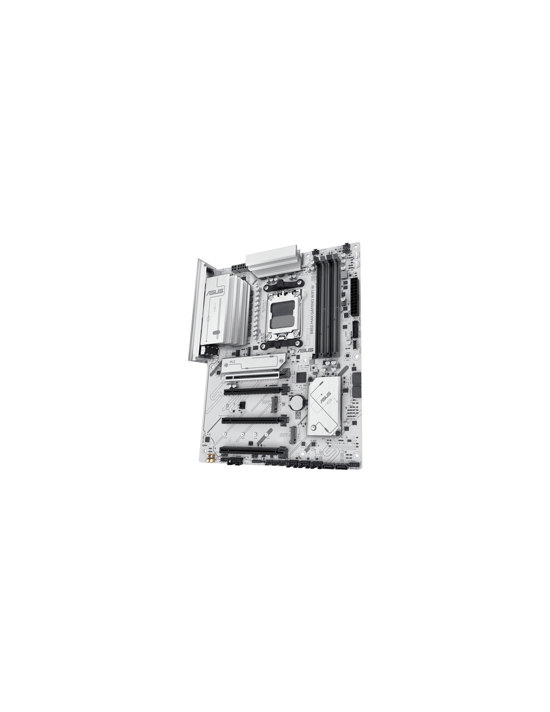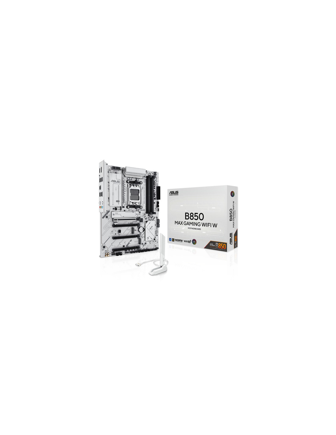 ASUS B850 MAX GAMING WIFI W. Produttore processore: AMD, Presa per processore: Socket AM5, Processori compatibili: AMD Ryzen 7000 Series, AMD Ryzen 8000 Series, AMD Ryzen 9000 Series. Tipi di memoria supportati: DDR5-SDRAM, RAM massima supportata: 256 GB, tipo di slot di memoria: DIMM. Interfacce dell'unità di archiviazione supportate: M.2, SATA III, Tipi di unità di archiviazione supportate: HDD & SSD, Livelli RAID: 0, 1, 5, 10. Tipo di interfaccia Ethernet: 2.5 Gigabit Ethernet, Wi-Fi standard: Wi-Fi 6E (802.11ax), Standard Wi-Fi: Wi-Fi 6E (802.11ax). Componente per: PC, Fattore di forma scheda madre: ATX, Famiglia di chipset per scheda madre: AMD