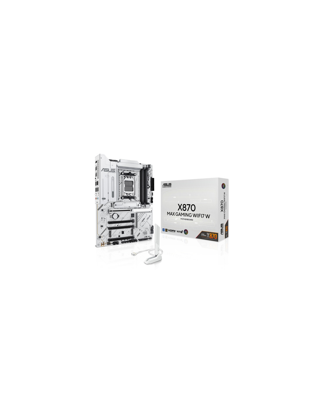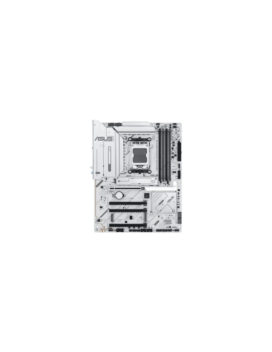 ASUS X870 MAX GAMING WIFI7 W. Produttore processore: AMD, Presa per processore: Socket AM5, Processori compatibili: AMD Ryzen 7000 Series, AMD Ryzen 8000 Series, AMD Ryzen 9000 Series. Tipi di memoria supportati: DDR5-SDRAM, RAM massima supportata: 256 GB, tipo di slot di memoria: DIMM. Interfacce dell'unità di archiviazione supportate: PCI Express 4.0, PCI Express 5.0, SATA III, Tipi di unità di archiviazione supportate: HDD & SSD, Livelli RAID: 0, 1, 5, 10. Risoluzione massima: 3840 x 2160 Pixel. Connettore USB: USB tipo A, USB tipo-C
