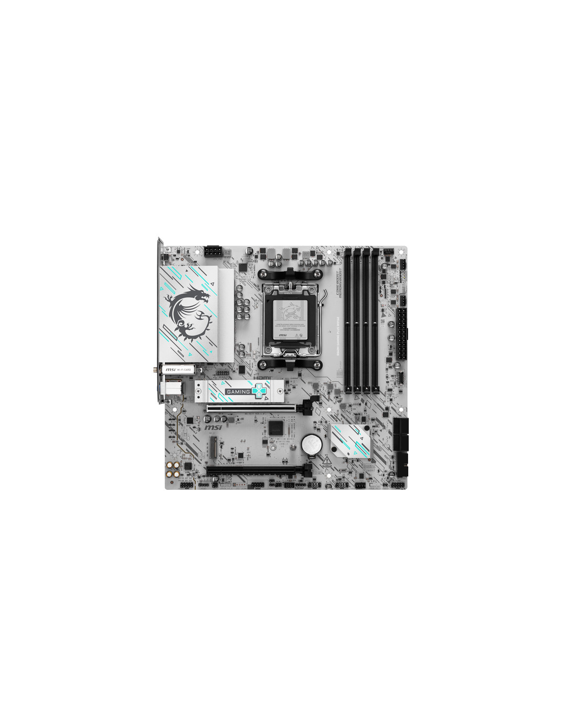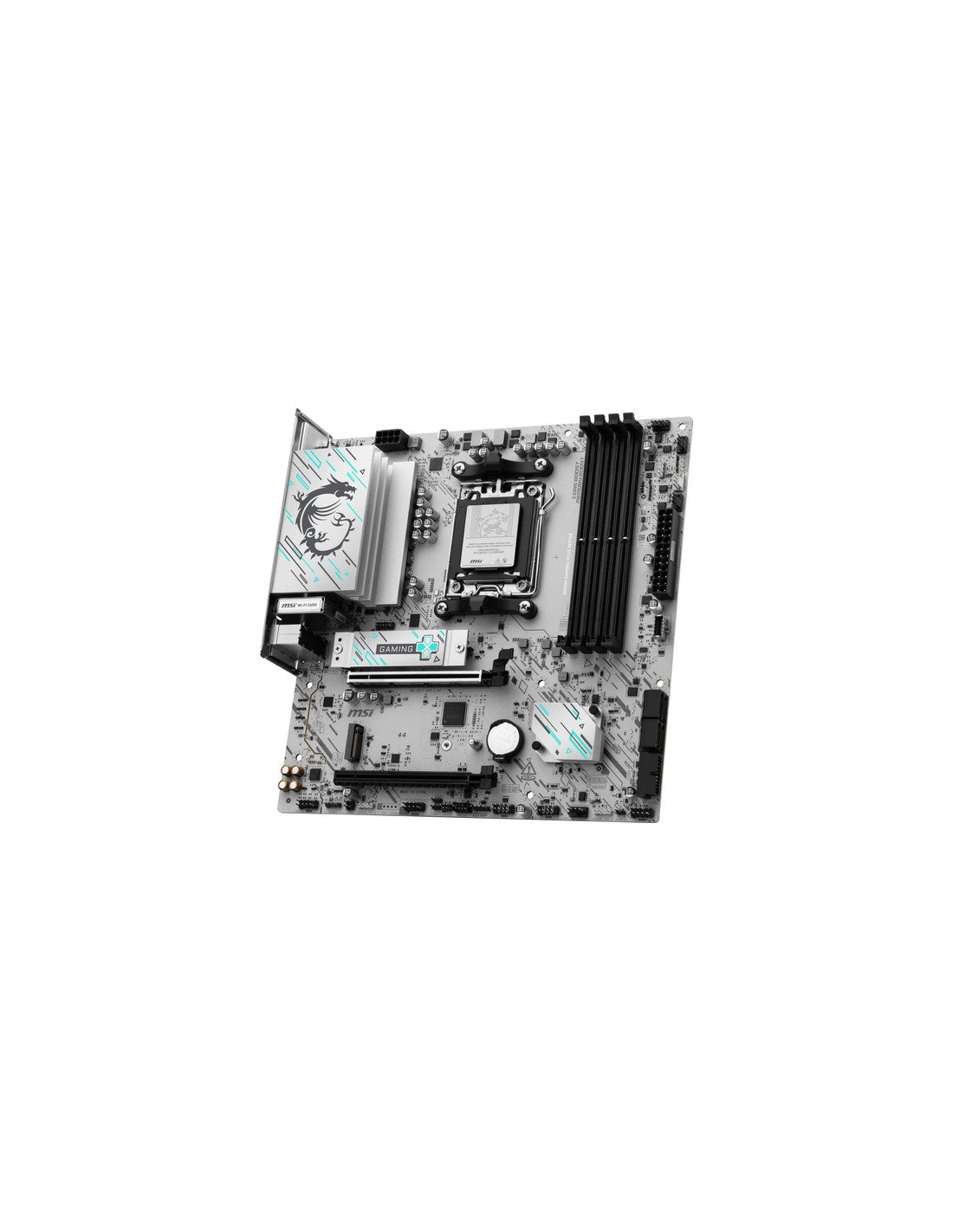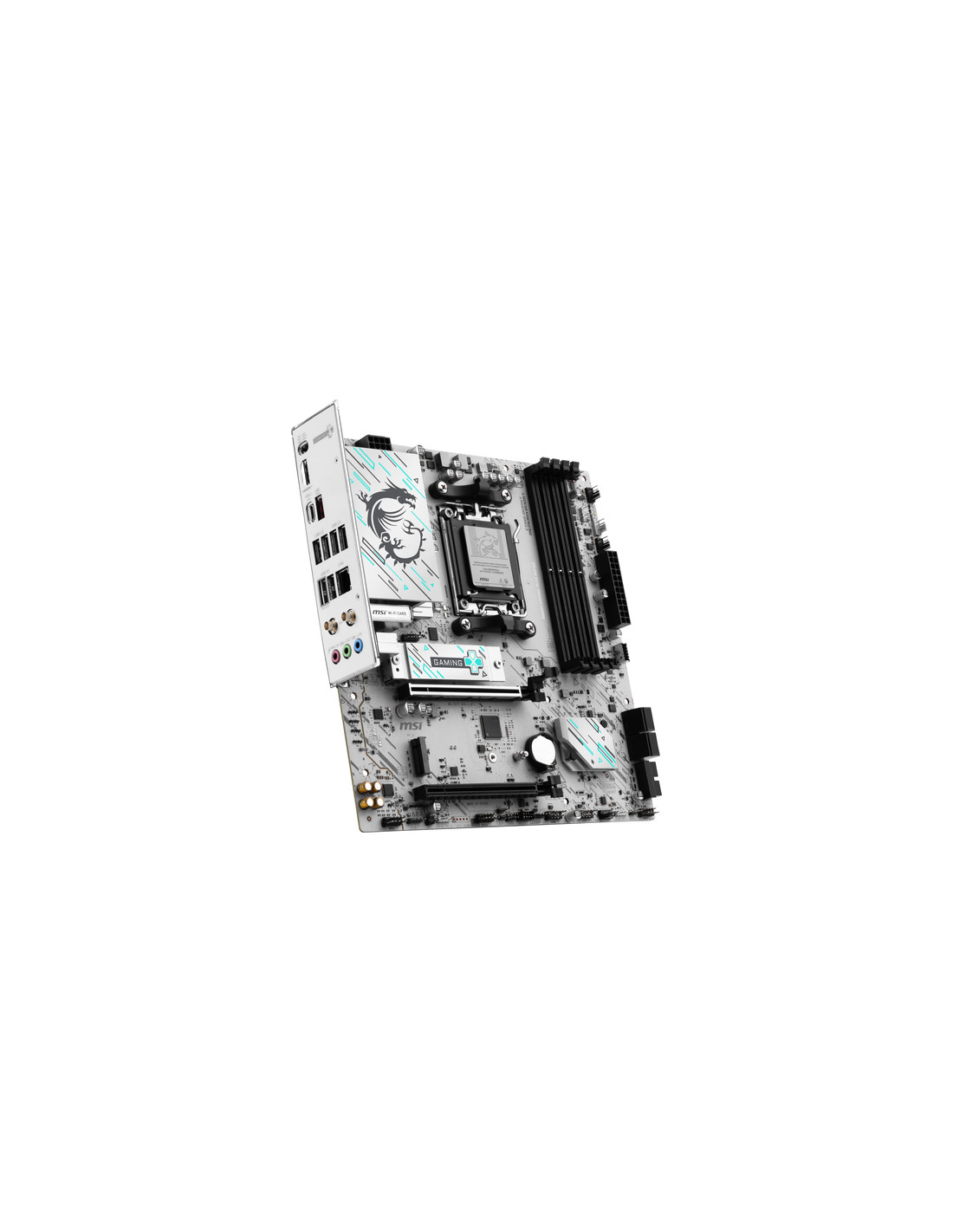 MSI B840M GAMING PLUS WIFI6E. Produttore processore: AMD, Presa per processore: Socket AM5, Processori compatibili: AMD Ryzen 7000 Series, AMD Ryzen 8000 Series, AMD Ryzen 9000 Series. Tipi di memoria supportati: DDR5-SDRAM, RAM massima supportata: 256 GB, tipo di slot di memoria: DIMM. Interfacce dell'unità di archiviazione supportate: M.2, Micro SATA III, Tipi di unità di archiviazione supportate: HDD & SSD, Livelli RAID: 0, 1, 10. Tipo di interfaccia Ethernet: 2.5 Gigabit Ethernet, Controller LAN: Realtek RTL8125D, Wi-Fi standard: Wi-Fi 6E (802.11ax). Componente per: PC, Fattore di forma scheda madre: micro ATX, Famiglia di chipset per scheda madre: AMD