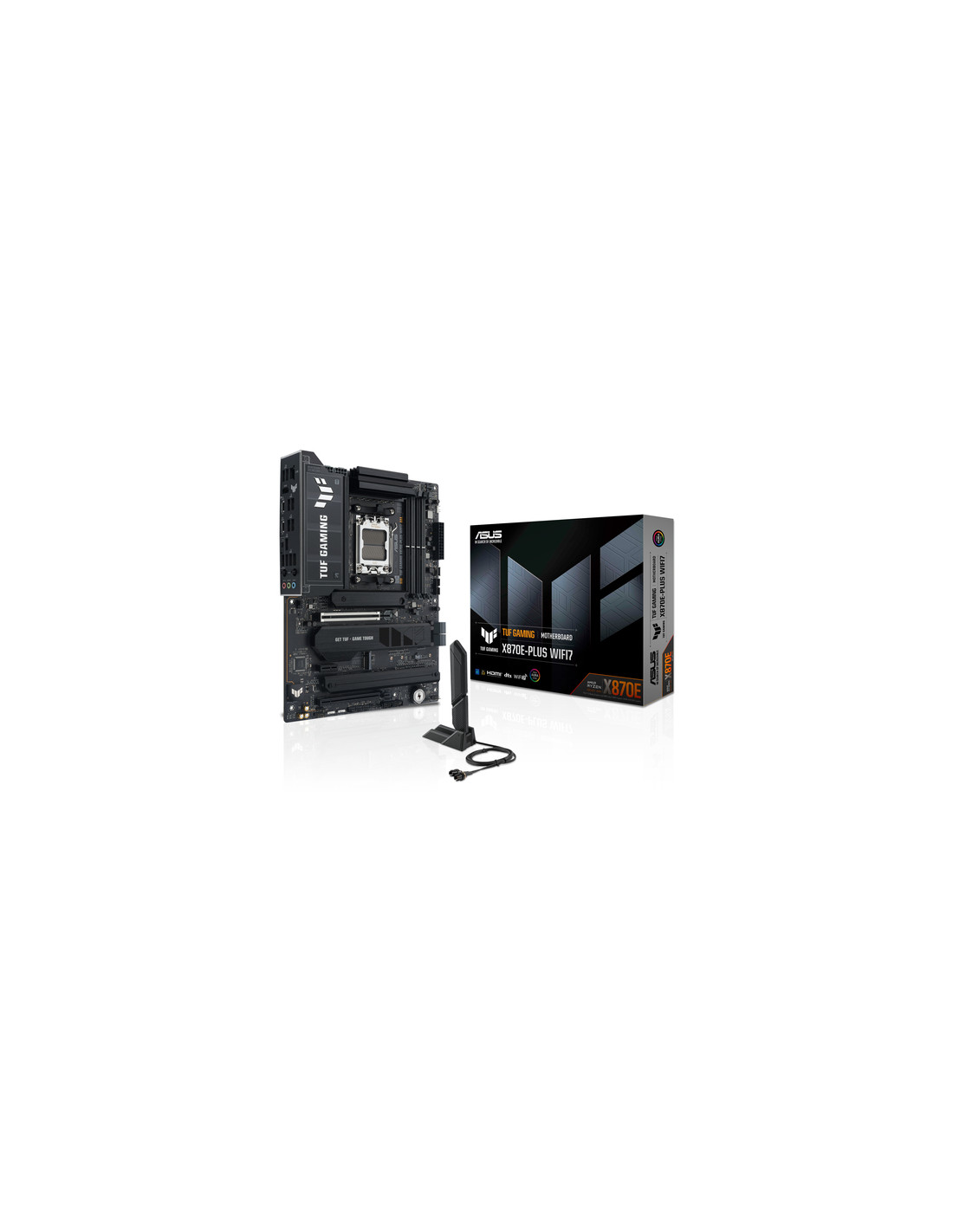 ASUS TUF GAMING X870E-PLUS WIFI7. Produttore processore: AMD, Presa per processore: Socket AM5, Processori compatibili: AMD Ryzen 7000 Series, AMD Ryzen 8000 Series, AMD Ryzen 9000 Series. Tipi di memoria supportati: DDR5-SDRAM, RAM massima supportata: 256 GB, tipo di slot di memoria: DIMM. Interfacce dell'unità di archiviazione supportate: M.2, PCI Express 4.0, PCI Express 5.0, SATA III, Tipi di unità di archiviazione supportate: HDD & SSD, Livelli RAID: 0, 1, 5, 10. Tipo di interfaccia Ethernet: 2.5 Gigabit Ethernet, Wi-Fi standard: Wi-Fi 7 (802.11be), Standard Wi-Fi: Wi-Fi 7 (802.11be). Componente per: PC, Fattore di forma scheda madre: ATX, Famiglia di chipset per scheda madre: AMD