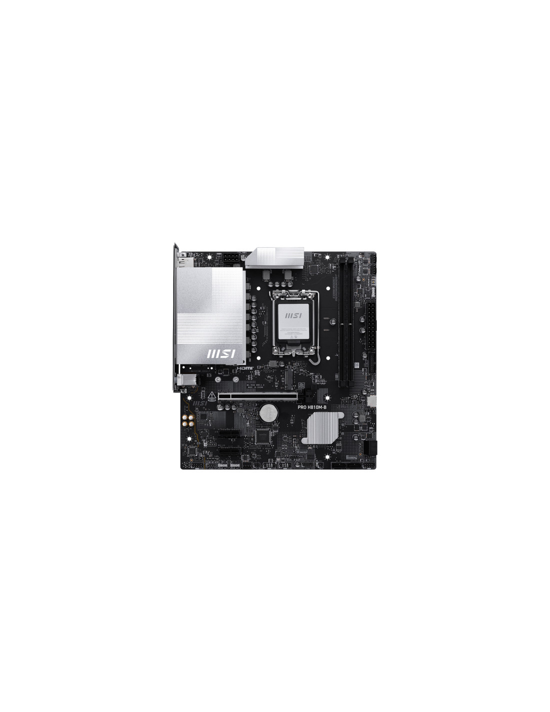 MSI PRO H810M-B. Produttore processore: Intel, Presa per processore: LGA 1851 (Socket V1), Processori compatibili: Intel Core Ultra (Series 2). Tipi di memoria supportati: DDR5-SDRAM, RAM massima supportata: 128 GB, Compatibilità ECC: Non-ECC. Interfacce dell'unità di archiviazione supportate: SATA III, Tipi di unità di archiviazione supportate: HDD & SSD. Tipo di interfaccia Ethernet: 2.5 Gigabit Ethernet. Componente per: PC, Fattore di forma scheda madre: micro ATX, Famiglia di chipset per scheda madre: Intel