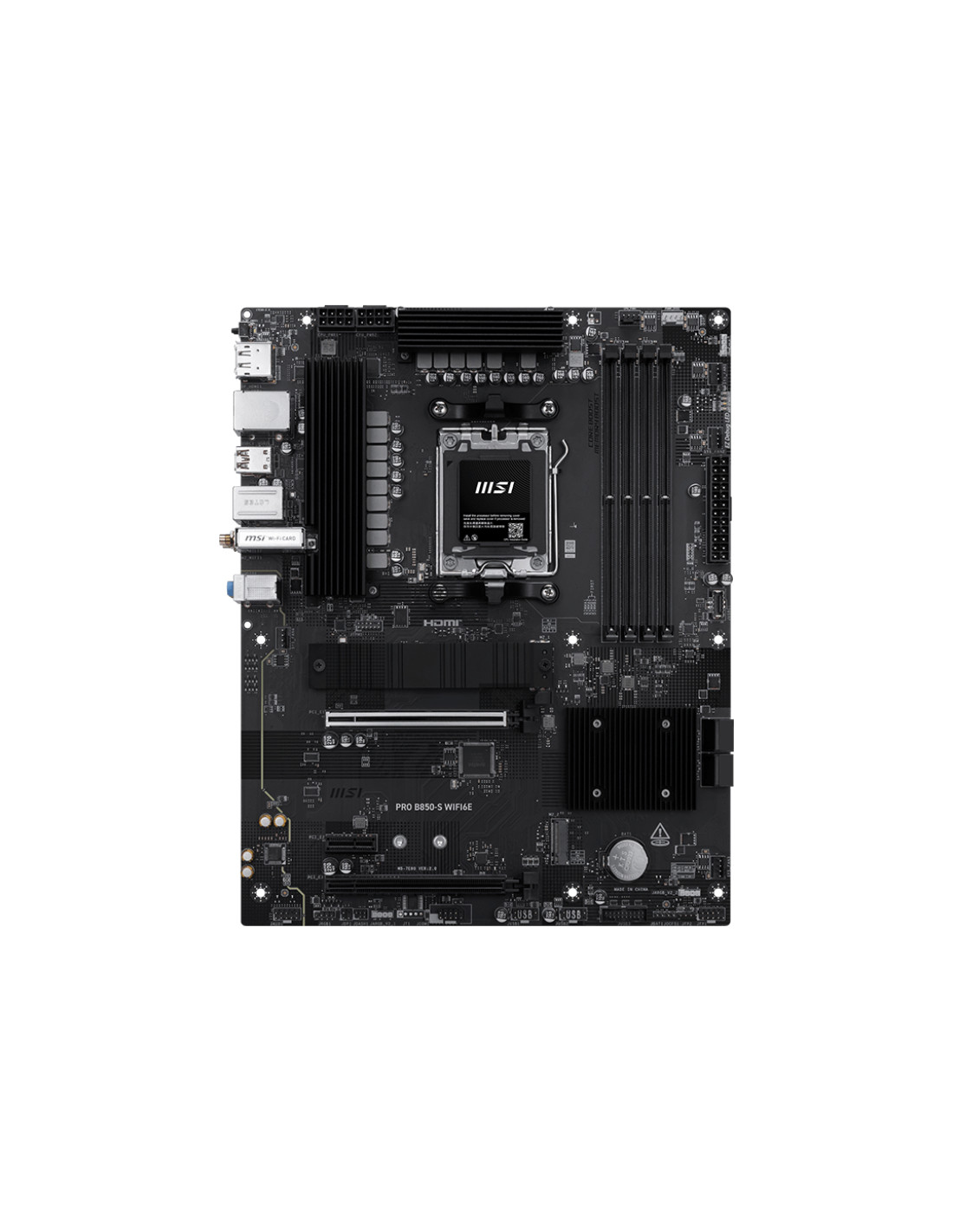 MSI PRO B850-S WIFI6E. Produttore processore: AMD, Presa per processore: Socket AM5, Processori compatibili: AMD Ryzen 7000 Series, AMD Ryzen 8000 Series, AMD Ryzen 9000 Series. Tipi di memoria supportati: DDR5-SDRAM, RAM massima supportata: 256 GB, tipo di slot di memoria: DIMM. Interfacce dell'unità di archiviazione supportate: M.2, SATA, Tipi di unità di archiviazione supportate: HDD & SSD, Livelli RAID: 0, 1, 10. Tipo di interfaccia Ethernet: 2.5 Gigabit Ethernet, Controller LAN: Realtek RTL8125, Wi-Fi standard: Wi-Fi 6E (802.11ax). Componente per: PC, Fattore di forma scheda madre: ATX, Famiglia di chipset per scheda madre: AMD