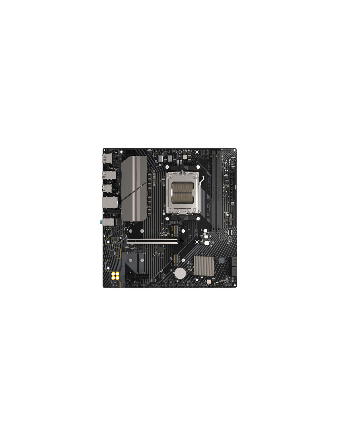 Sapphire B650M-E. Produttore processore: AMD, Presa per processore: Socket AM5, Processori compatibili: AMD Ryzen 7000 Series, AMD Ryzen 8000 Series, AMD Ryzen 9000 Series. Tipi di memoria supportati: DDR5-SDRAM, RAM massima supportata: 96 GB, tipo di slot di memoria: DIMM. Interfacce dell'unità di archiviazione supportate: PCI Express 4.0, PCI Express 5.0, SATA III, Tipi di unità di archiviazione supportate: HDD & SSD. Connettore USB: USB tipo A. Tipo di interfaccia Ethernet: 2.5 Gigabit Ethernet, Controller LAN: Dragon RTL8125BG