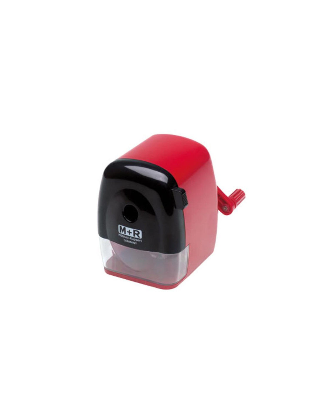 Temperamatite a manovella 2 fori diam 8 mm - diam 11 5 mm - cono lungo e cono corto colore rosso + accessorio per fissaggio al tavolo