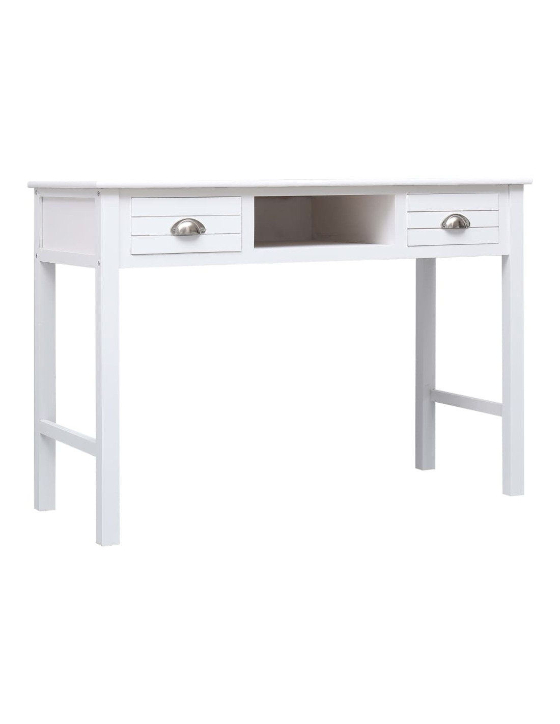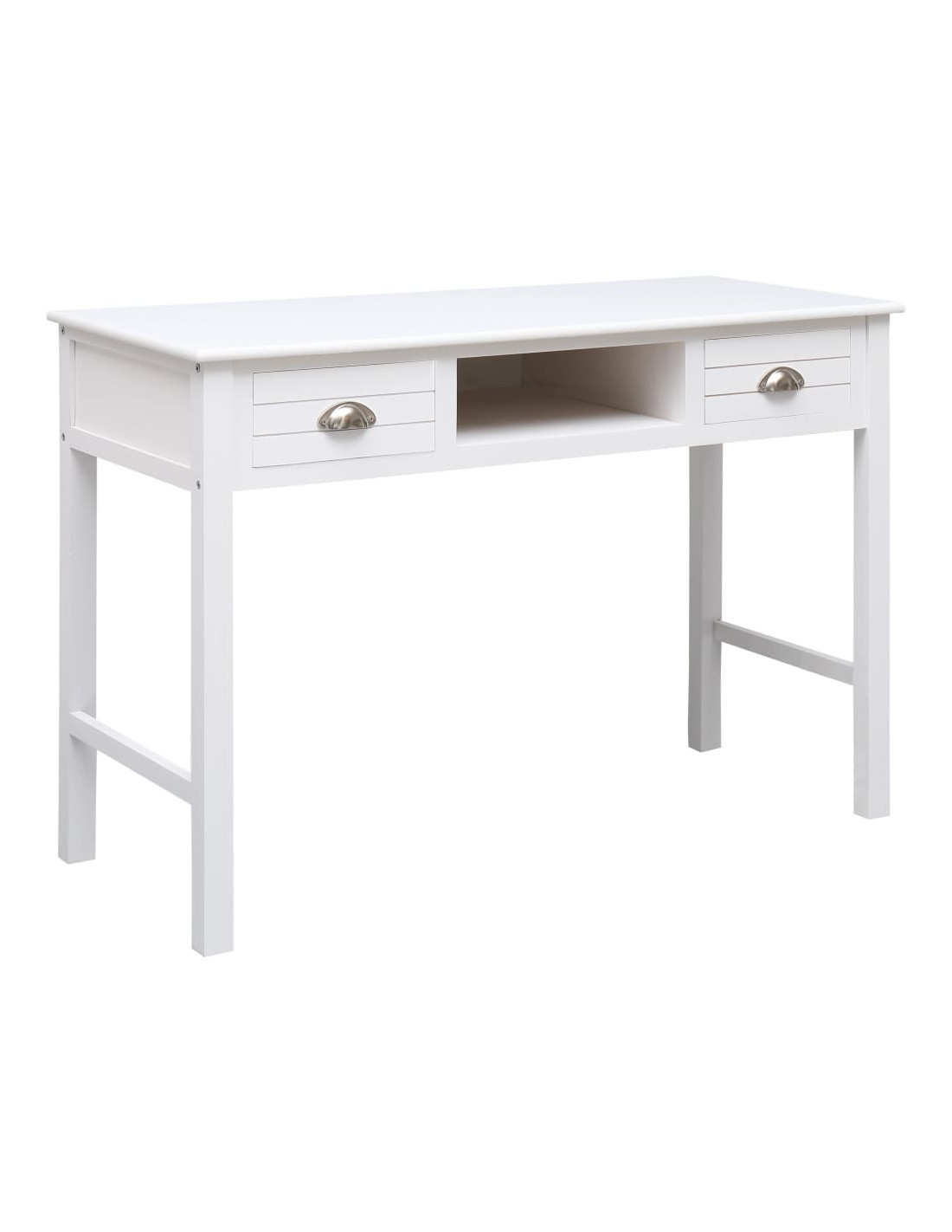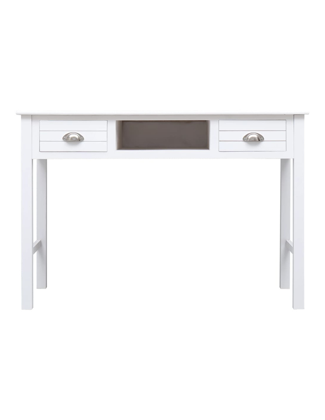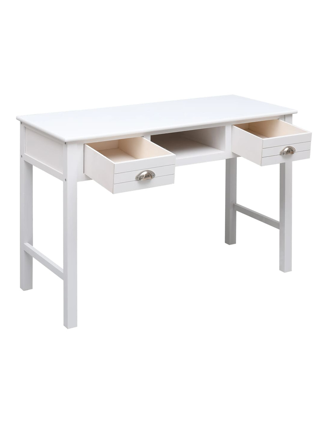 Realizzata in legno di paulownia e pioppo di alta qualità, questa scrivania è robusta e resistente. È dotata di 2 cassetti e 1 scomparto aperto centrale, perfetti per mantenere documenti e altri prodotti essenziali per ufficio in ordine e a portata di mano.
