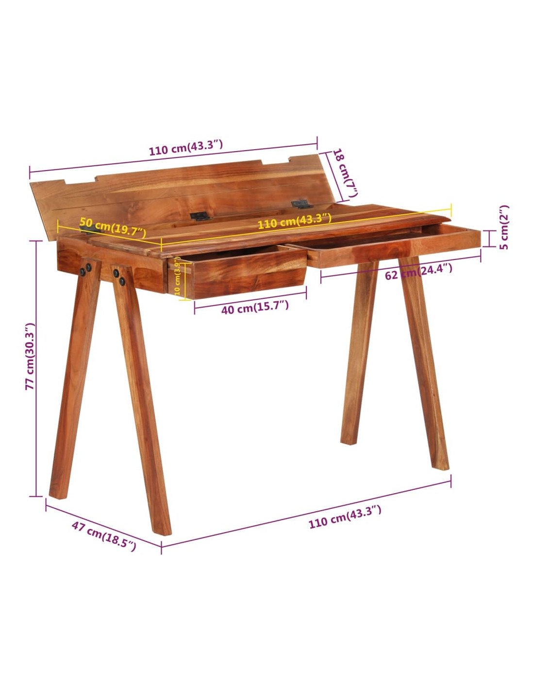 - Legno massello di acacia: La scrivania da ufficio è realizzata in legno massello di acacia. Il legno massello di acacia è un bellissimo materiale naturale. Il legno di acacia è un legno duro tropicale, che è denso, robusto e durevole.