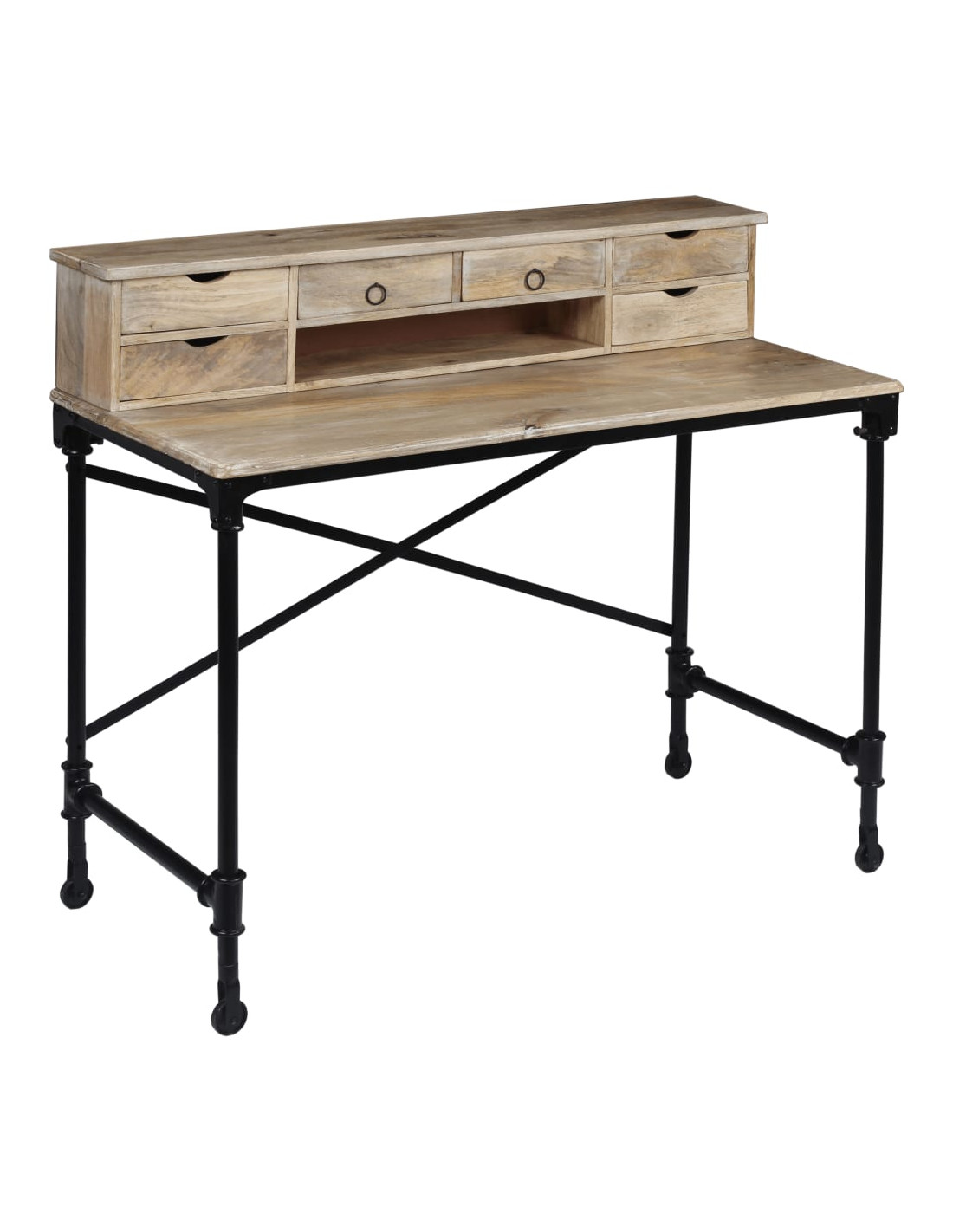 Questo pratica scrivania, in legno massello di mango, emana un fascino rustico e costituisce un'aggiunta unica all'arredamento della vostra stanza.