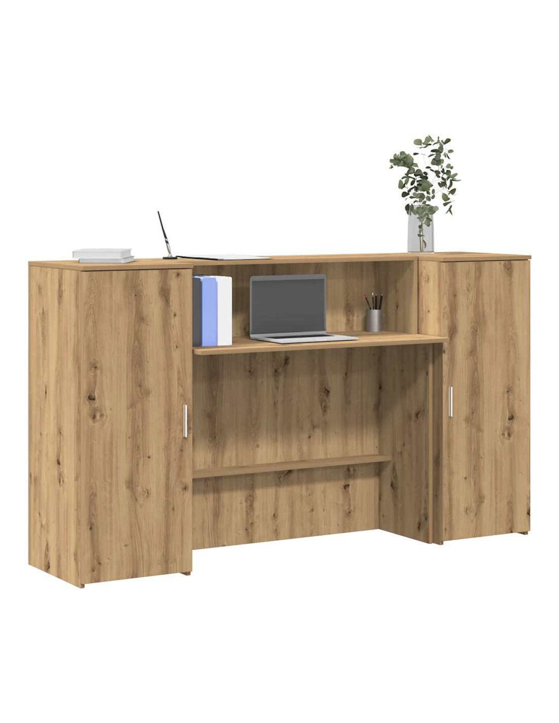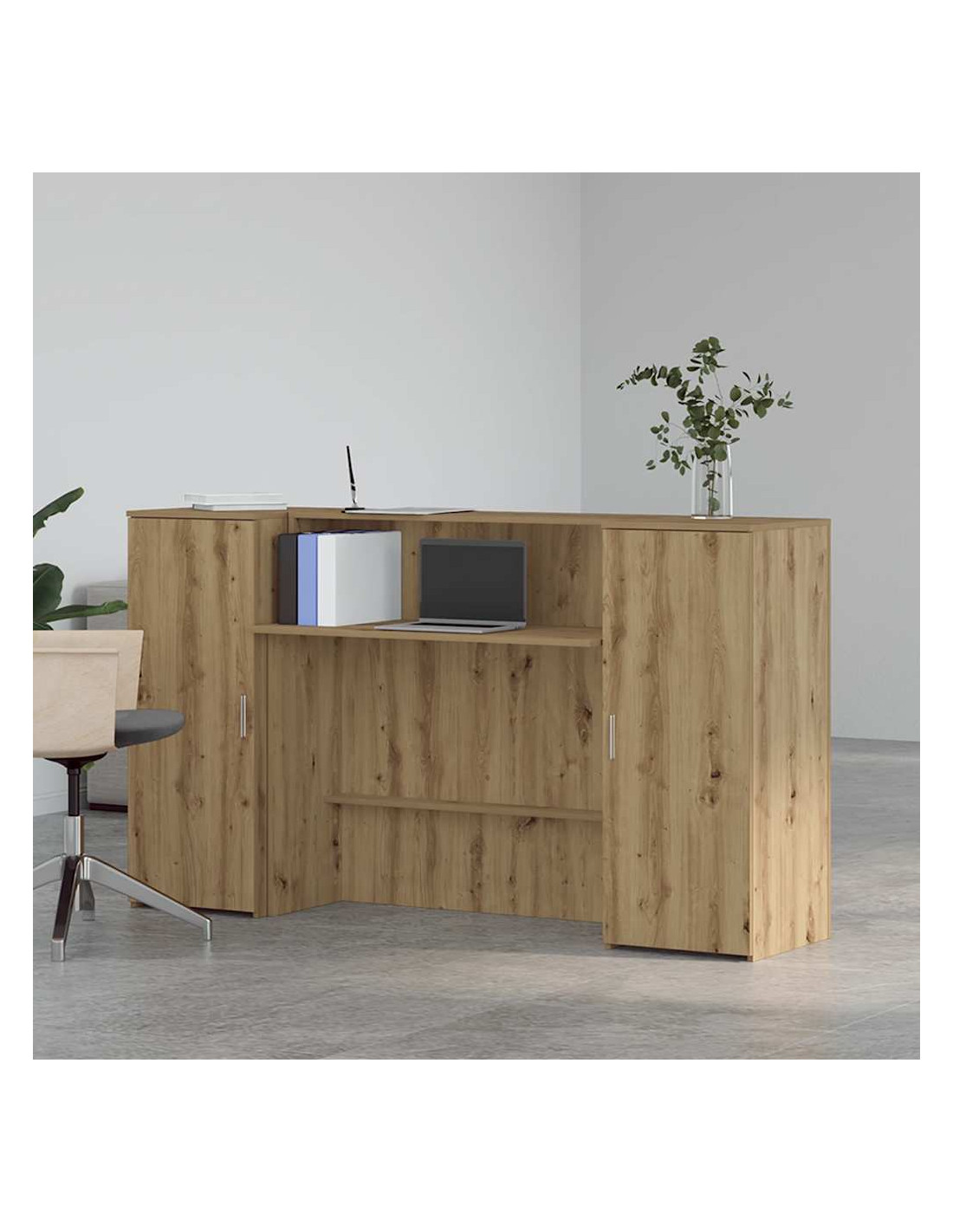 • Ampio spazio di archiviazione: La reception e l'armadietto offrono ampio spazio per riporre le forniture per ufficio, i documenti, gli oggetti personali e altri oggetti essenziali ben organizzati e a portata di mano.