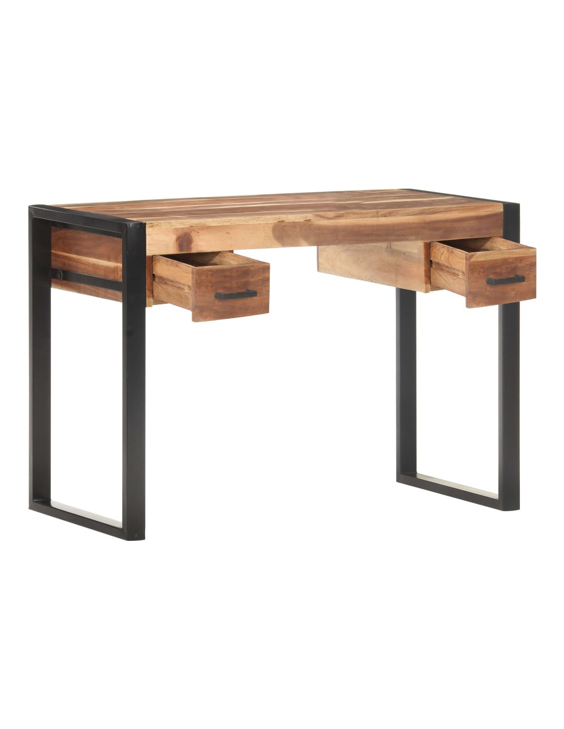 Questo scrittoio in stile vintage, realizzato in legno massello di acacia e di hevea con finitura in sheesham, è un intramontabile aggiunta alla vostra casa. Lo sheesham è un legno duro tropicale famoso per le sue ricche venature. È anche conosciuto come palissandro o dalbergia. Ogni fase del processo viene eseguita con la massima cura, che si tratti di lucidatura, verniciatura o laccatura. La scrivania è robusta e durevole con la sua resistente struttura in acciaio. Il piano del tavolo fornisce una superficie stabile e sicura per posizionare le vostre bevande, un cesto di frutta o un vaso o altri oggetti decorativi. Ha due cassetti che offrono ampio spazio per riporre piccoli oggetti come chiavi e taccuini. La scrivania può essere utilizzata come tavolo da computer, tavolo da lavoro, scrivania da ufficio, tavolo da lettura, tavolo da studio, ecc. Può anche essere utilizzata come credenza o consolle.