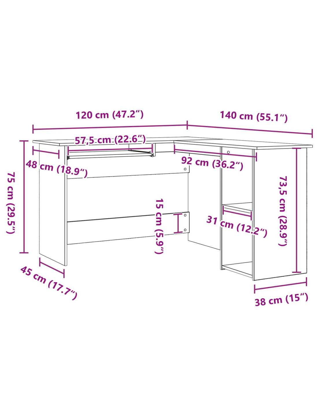 - Superficie spaziosa: Progettata per offrire tanto spazio, la scrivania accoglie vari compiti, dalla scrittura all'uso del laptop. Le dimensioni di 120 x 140 x 75 cm assicurano che non manchi mai spazio e ti aiutano a mantenere tutto in ordine. È adatta sia per lavori professionali che per studio.