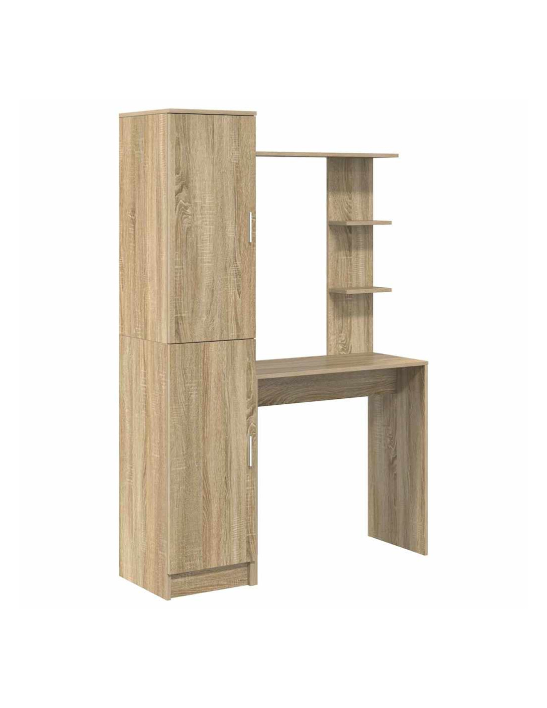 - Componenti collaborativi: Con ripiani in legno, offre tanto spazio per libri, file e strumenti essenziali, fungendo da area di lavoro e unità di archiviazione. Le porte a battente proteggono dagli agenti esterni e permettono di mantenere un aspetto ordinato.