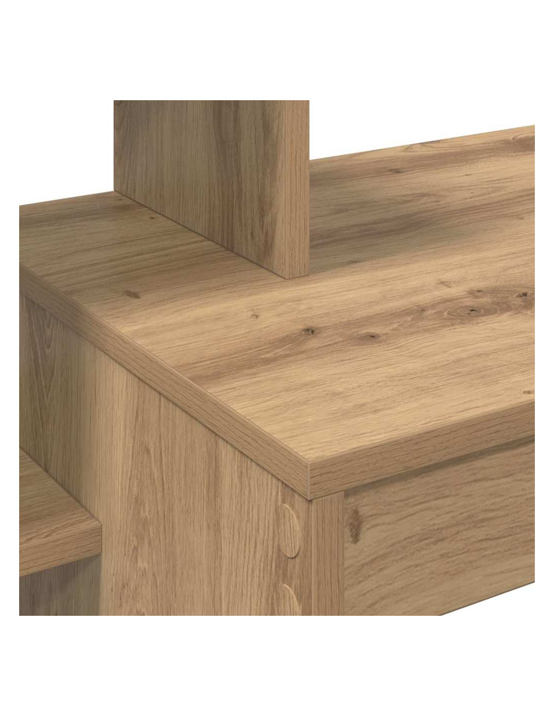 - Materiali: La scrivania è fatta di legno ingegnerizzato, robusto e liscio. Resiste a macchie e usura, rimanendo bella a lungo. Inoltre, è ecologica, offrendo mobili durevoli per uno stile di vita più green.