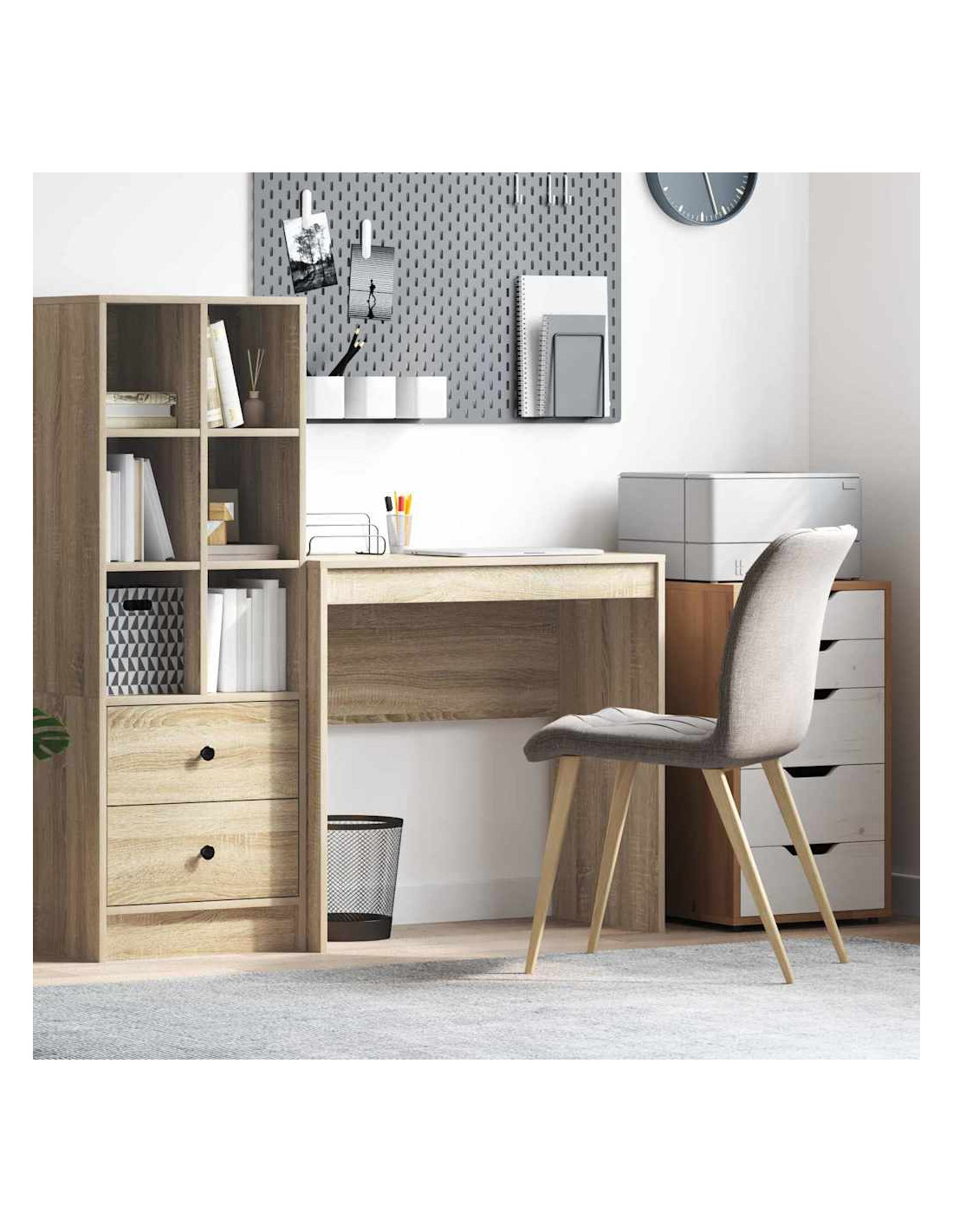 - Struttura in legno ingegnerizzato Il telaio è resistente e affidabile, costruito interamente in legno ingegnerizzato, garantendo stabilità e un uso duraturo. Questo materiale è scelto per la sua resistenza, il che lo rende adatto all'uso quotidiano. La scrivania regge bene anche in caso di utilizzo frequente, mantenendo eleganza e funzionalità.