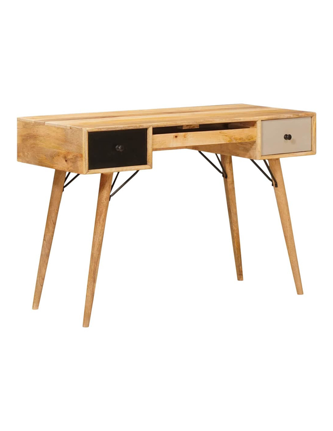 - Legno massello di mango: È interamente realizzata in legno massello di mango, noto per la durata e le venature attraenti. Questo materiale garantisce che la scrivania duri nel tempo e sia un bel punto focale nel tuo ufficio.