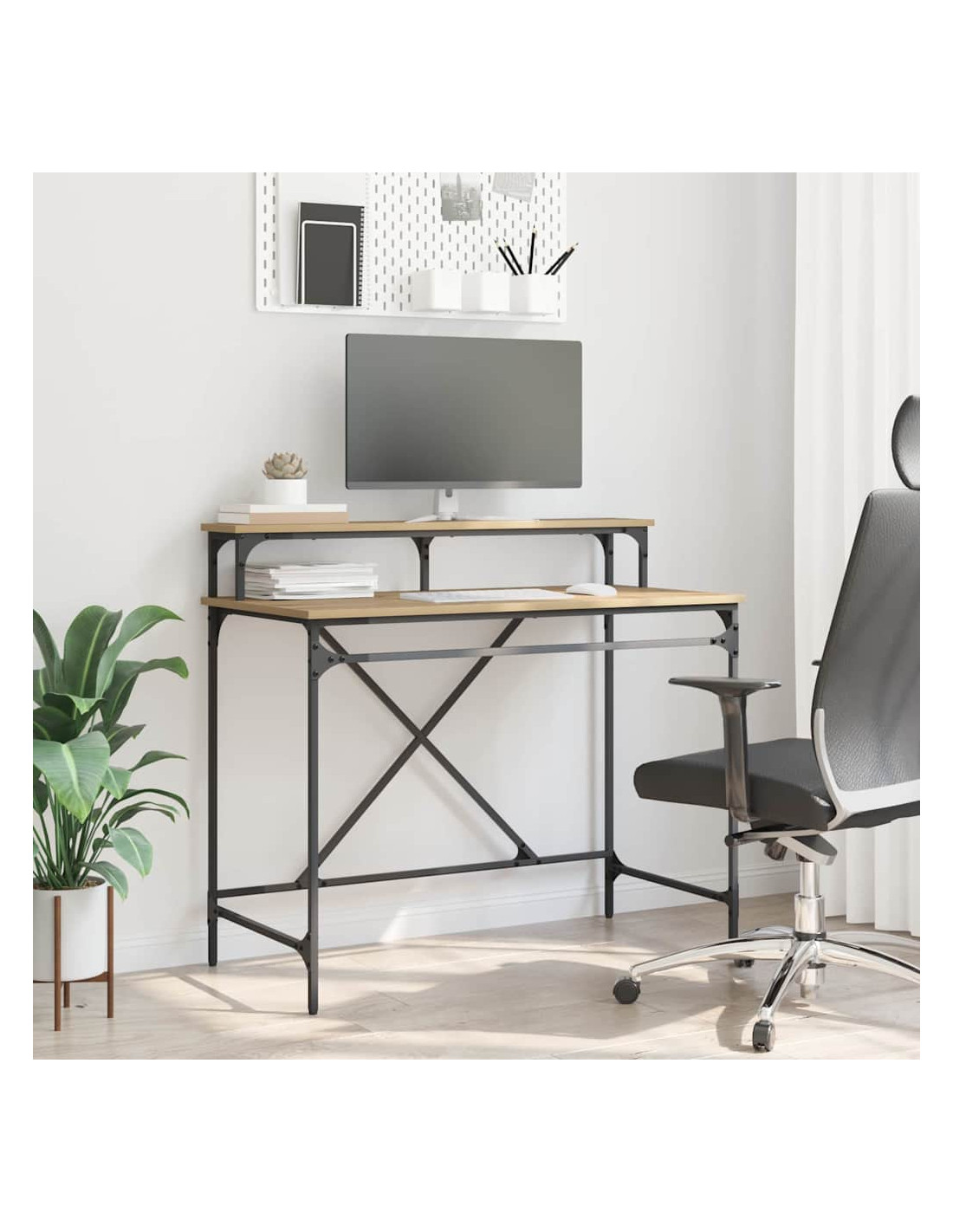 Sei alla ricerca di una scrivania in stile industriale? Questa è la scelta ideale per ogni ufficio moderno! Con il suo telaio rettangolare elegante e un look contemporaneo, si sposa alla perfezione con decorazioni sia moderne che rustiche. Il piano in legno ingegnerizzato è super elegante, offrendo spazio a sufficienza per scrivere, usare il laptop o gestire le attività quotidiane. È un elemento fondamentale sia per uffici domestici che professionali che puntano su funzione e stile.