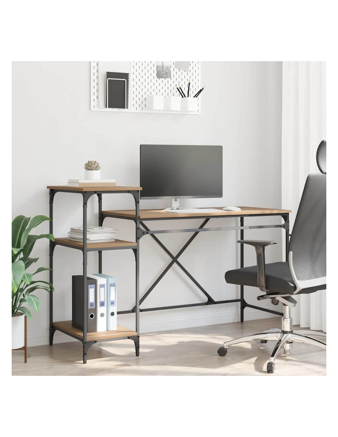 - Design industriale Ispirata ai loft urbani, questa scrivania ha un'estetica chic, con una struttura metallica grezza e superfici in legno ingegnerizzato. Il design a gamba posteriore dà un tocco rustico, sostenendo un ambiente di lavoro robusto e adatto a vari contesti. Mescola senza sforzo un fascino vintage con funzionalità moderna.