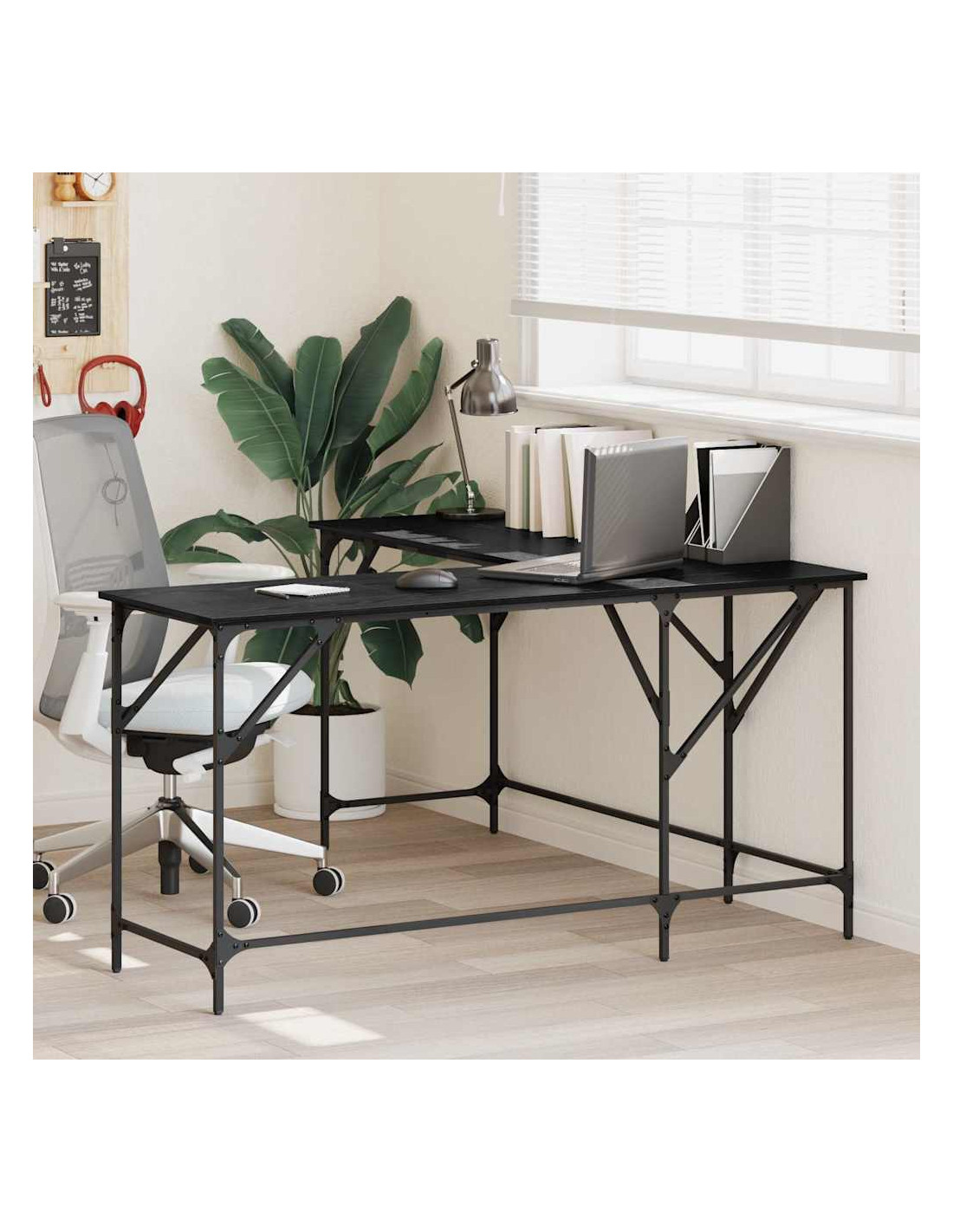 - Superficie in legno ingegnerizzato: La scrivania ha una superficie in legno ingegnerizzato nera, liscia e resistente. Questo materiale resiste all'usura e richiede poca manutenzione.