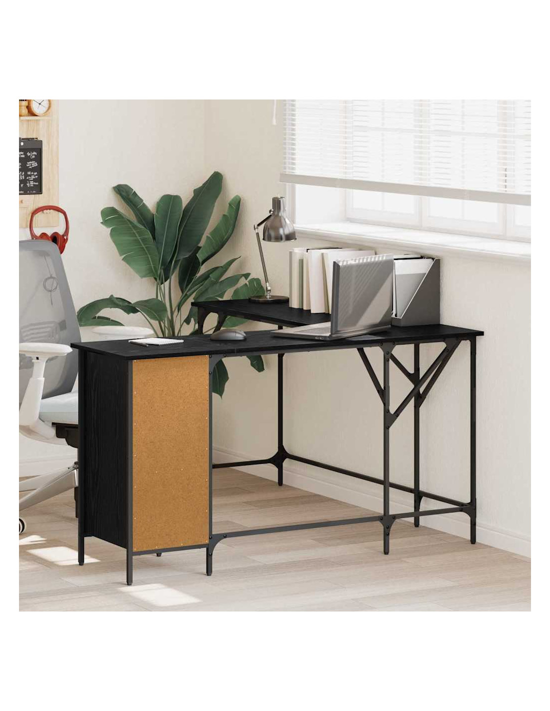 Questa scrivania angolare regolabile è un pezzo moderno creato per spazi di lavoro pratici. Il suo stile industriale ricorda i loft urbani, creando un'atmosfera unica a casa. Il piano ampio ti dà spazio per documenti e monitor widescreen, perfetta per chi lavora o per i creativi.