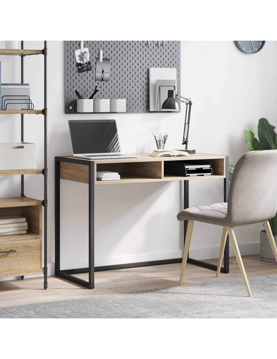 - Usi Raccomandati: Perfetta per il soggiorno, la scrivania è sia un ottimo spazio di lavoro che un'aggiunta elegante alla decorazione della tua casa. Il suo stile industriale si fonde bene in ambienti sia moderni che classici.