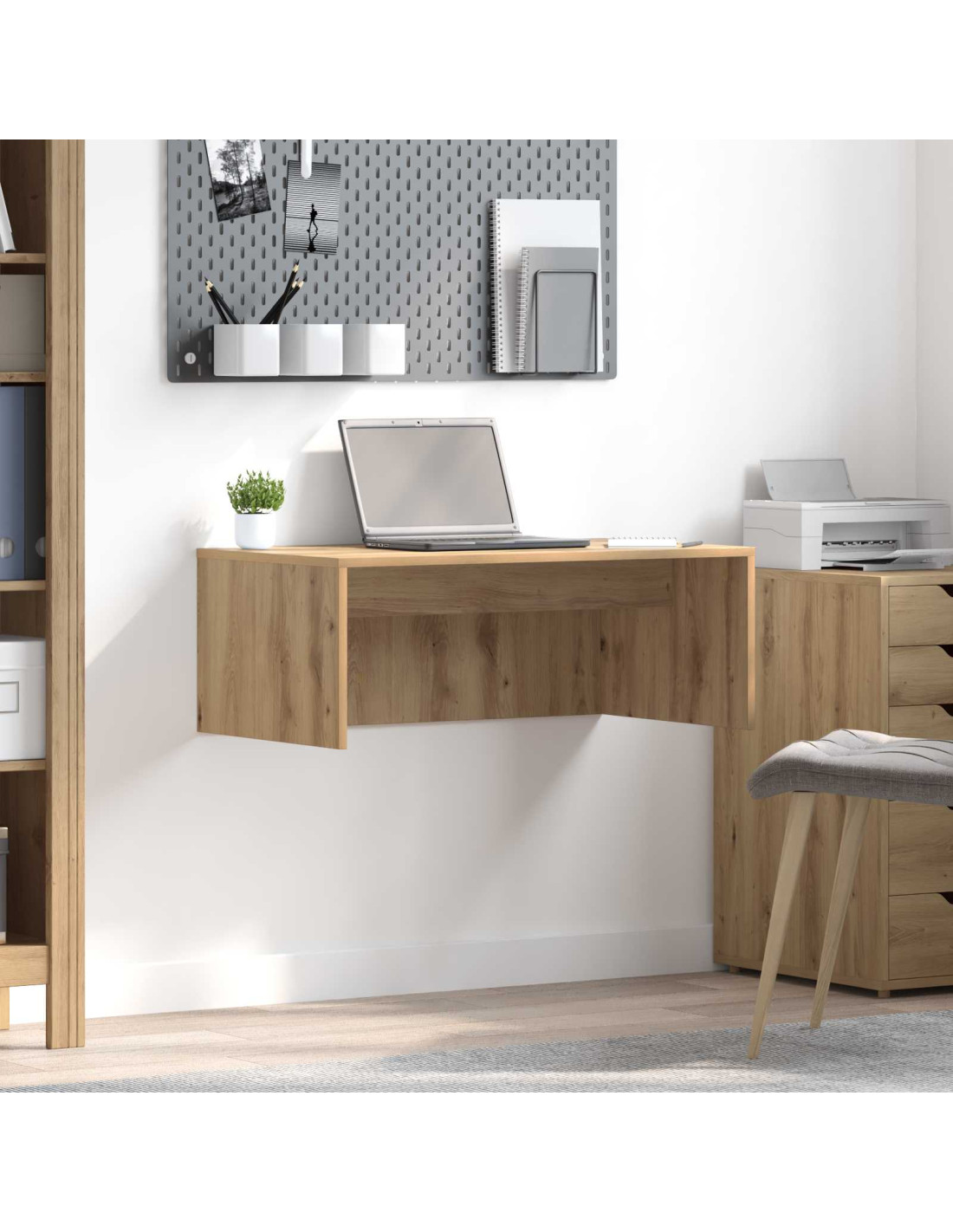 Questa scrivania a parete è perfetta per home office o spazi ristretti, unendo eleganza e funzionalità. Le linee pulite e l'estetica minimalista la rendono stilosa in qualsiasi stanza, mentre la superficie in legno ingegnerizzato è pratica e facile da pulire. Ideale per professionisti e studenti, aiuta a liberare spazio sul pavimento e crea un ambiente ordinato.