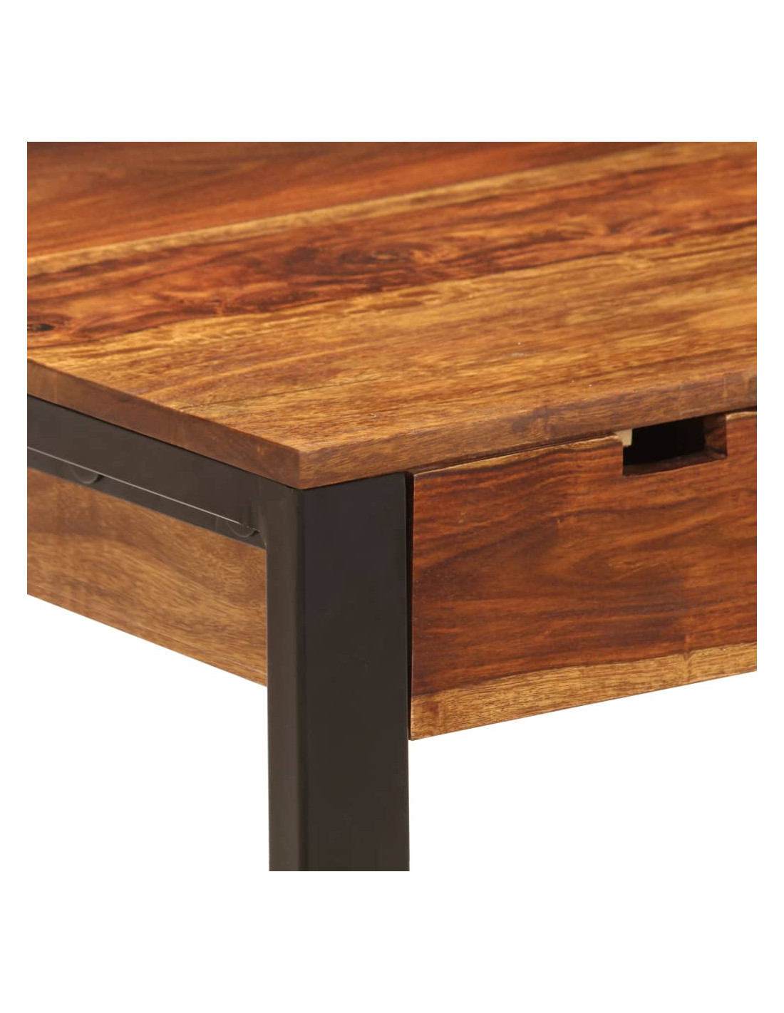 Il corpo della scrivania è realizzato in legno massello di sheesham. Lo sheesham è un legno tropicale famoso per le sue ricche venature ed è anche conosciuto come palissandro o dalbergia. Ogni fase del processo viene effettuata con la massima cura, che si tratti di levigatura, lucidatura, pittura o laccatura. La lavorazione artigianale e le belle venature del legno rendono ogni mobile unico e leggermente diverso dagli altri.