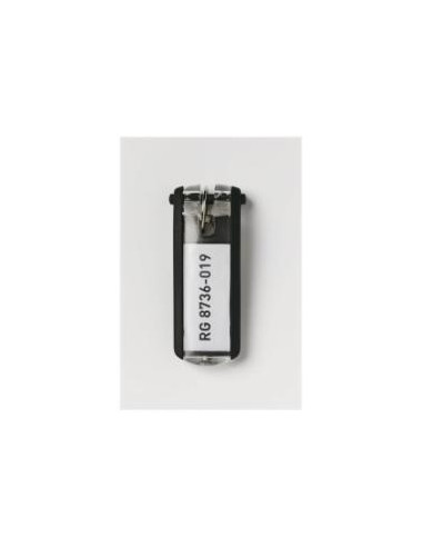 Portachiavi colore nero in plastica l etichetta è sempre visibile pratica chiusura a scatto spazio per 2-3 chiavi (conf.6)