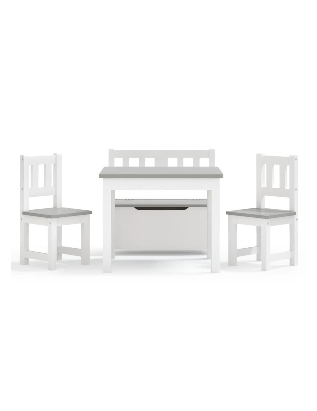 Questo set di tavolo e sedie è realizzato in MDF resistente, che lo rende facile da pulire e da manutenere. Il tavolo può essere utilizzato per giocare a puzzle, per i giochi da tavolo, per fare dei lavoretti e per fare gli spuntini, oltre che per leggere e scrivere. La panca è la combinazione perfetta tra seduta e spazio portaoggetti. La cesta integrata con il coperchio è ideale per riporre in ordine i giocattoli e altri oggetti. I bordi e gli angoli del tavolo e delle sedie sono arrotondati per garantire la sicurezza dei bambini. È il set perfetto per i vostri bambini da usare a casa, a scuola, all'asilo e così via.