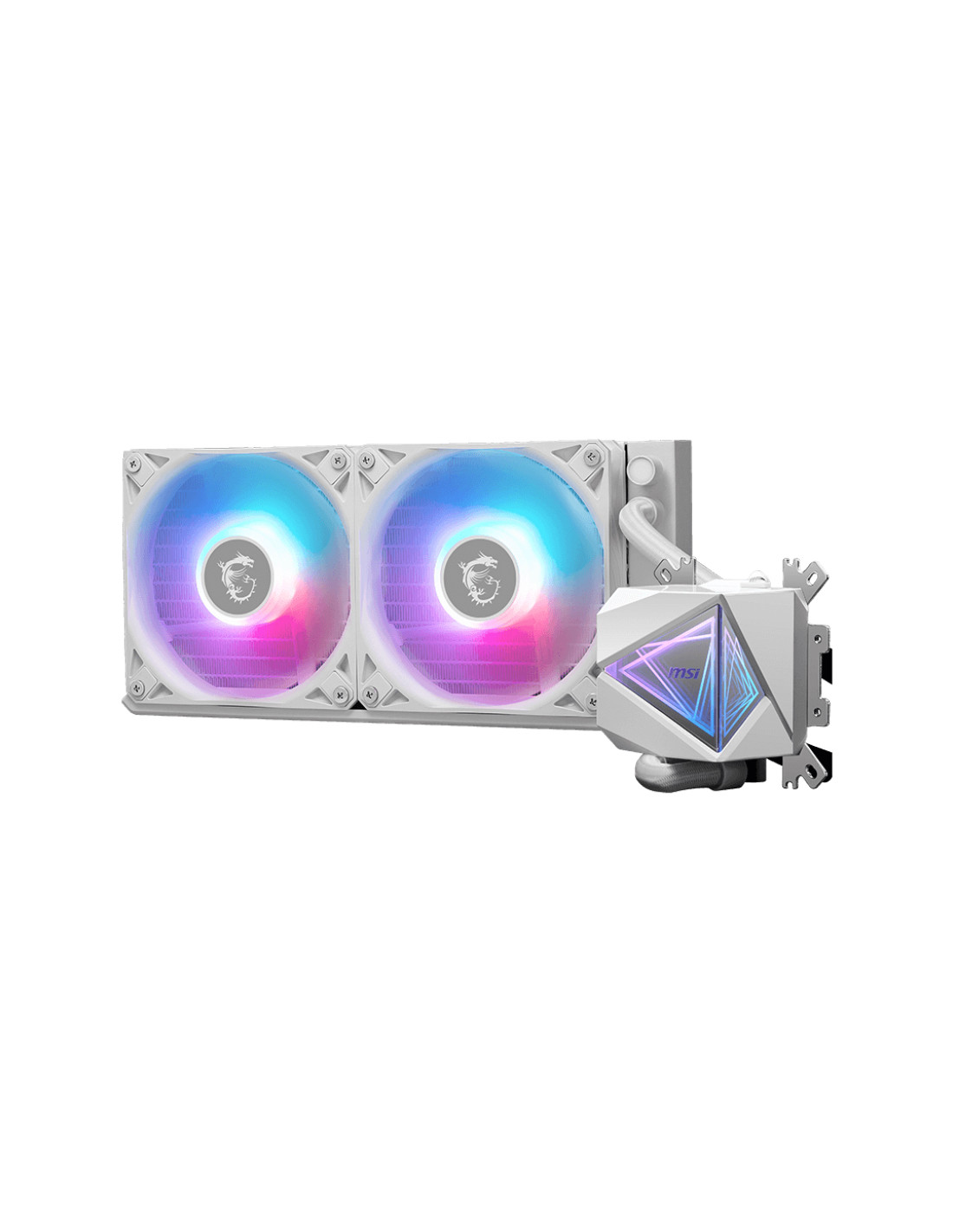 MSI MAG Coreliquid I240. Tipo: Kit di raffreddamento a liquido, Diametro del ventilatore: 12 cm, Tipo di cuscinetto: Loop Dynamic Bearing (LDB). Larghezza: 69,1 mm, Profondità: 74 mm, Altezza: 62,5 mm. Colore del prodotto: Bianco