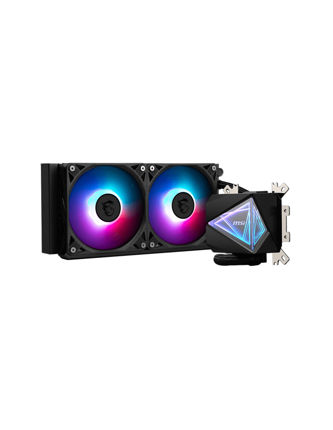 MSI MAG Coreliquid I240. Tipo: Raffreddatore di liquidi tutto in uno, Diametro del ventilatore: 12 cm, Tipo di cuscinetto: Loop Dynamic Bearing (LDB). Larghezza: 69,1 mm, Profondità: 74 mm, Altezza: 62,5 mm. Colore del prodotto: Nero