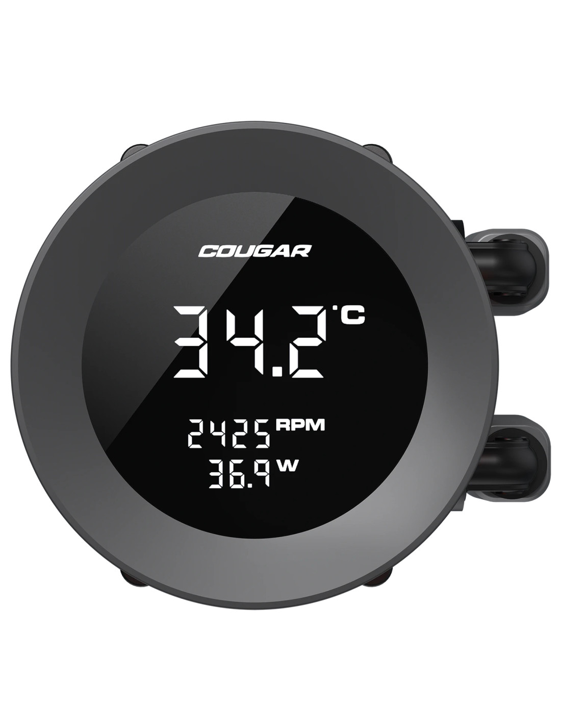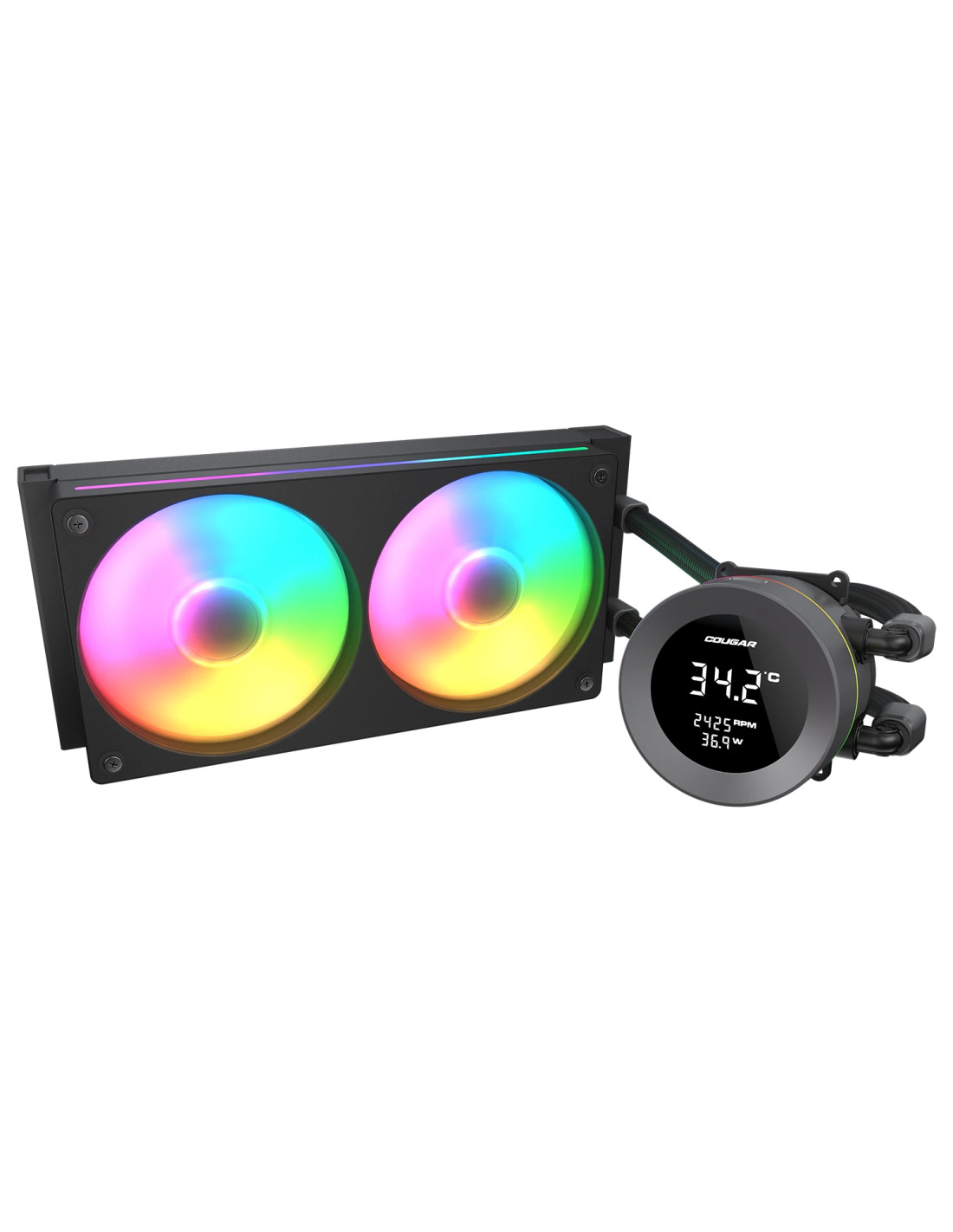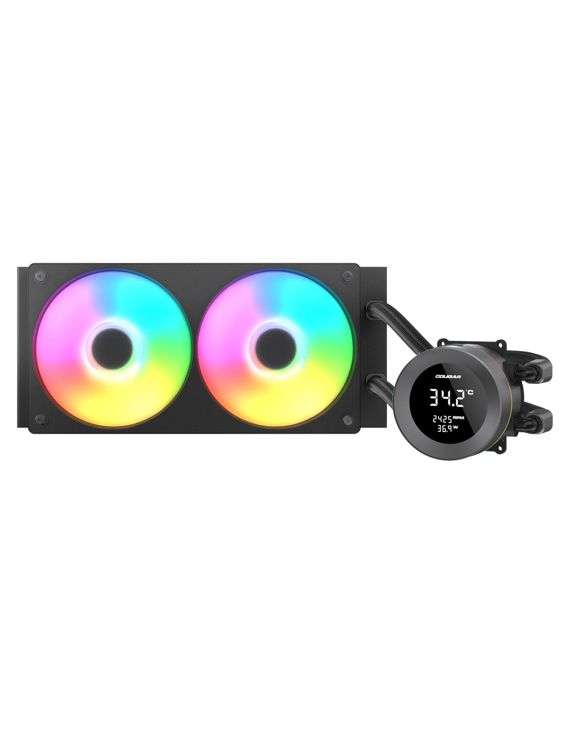 COUGAR Poseidon Vistek 240. Tipo: Raffreddatore di liquidi tutto in uno, Diametro del ventilatore: 12 cm, Velocità (minima) di rotazione: 700 Giri/min, Velocità (massima) di rotazione: 2500 Giri/min, pressione dell'aria massima: 5,4 mmH2O. Colore del prodotto: Nero
