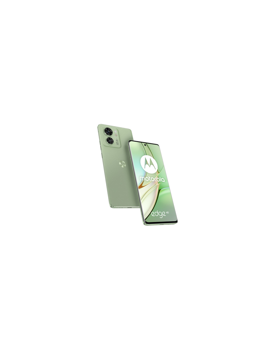 Motorola edge 40. Dimensioni diagonale schermo: 16,5 cm (6.5"), Risoluzione del display: 2400 x 1080 Pixel. Famiglia processore: MediaTek, Modello del processore: 8020. Capacità della RAM: 8 GB, Tipo di RAM: LPDDR4X, Capacità memoria interna: 256 GB. Risoluzione fotocamera posteriore (numerico): 50 MP, Tipo di fotocamera posteriore: Doppia fotocamera. Capacità della scheda SIM: Doppia SIM. Sistema operativo incluso: Android 13. Capacità della batteria: 4400 mAh. Colore del prodotto: Verde. Peso: 171 g