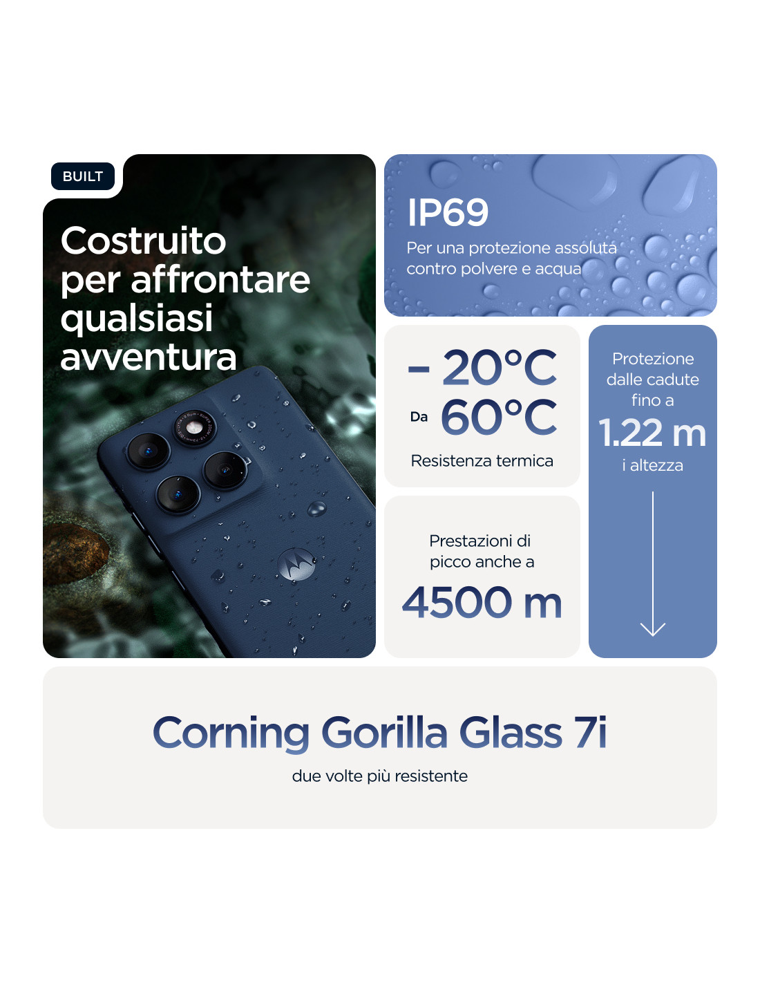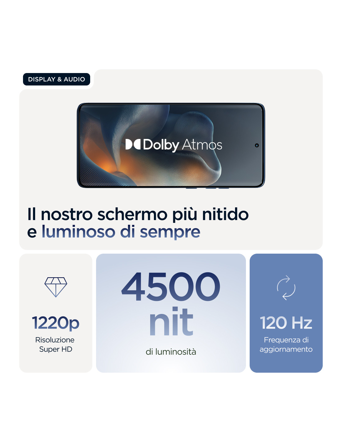 Per esprimerti al meglio ci vuole qualcosa di adatto al tuo stile. Il suo nome è Motorola Edge 60. Con un design quad-curved realizzato con precisione, è eccezionale da ogni angolazione. Scatta foto iconiche con quattro fotocamere professionali — principale, ultragrandangolare e selfie da 50 MP più teleobiettivo 3x dedicato — e Moto AI per una creatività immediata. Goditi uno smartphone dal design elegante e sofisticato, sempre protetto da cadute(1,2), temperature estreme(2) e acqua(3). Lasciati incantare dallo schermo Super HD (1220p) da 6,67", il più luminoso di sempre. Carica la batteria per l'intera giornata in soli 8 minuti (4) con la ricarica TurboPower™ da 68 W. In più c'è Moto AI, che rende i momenti di ogni giorno più semplici e intuitivi, dallo scatto di foto perfette all'organizzazione delle notifiche. È arrivato il nuovo Motorola Edge 60. What's your edge?