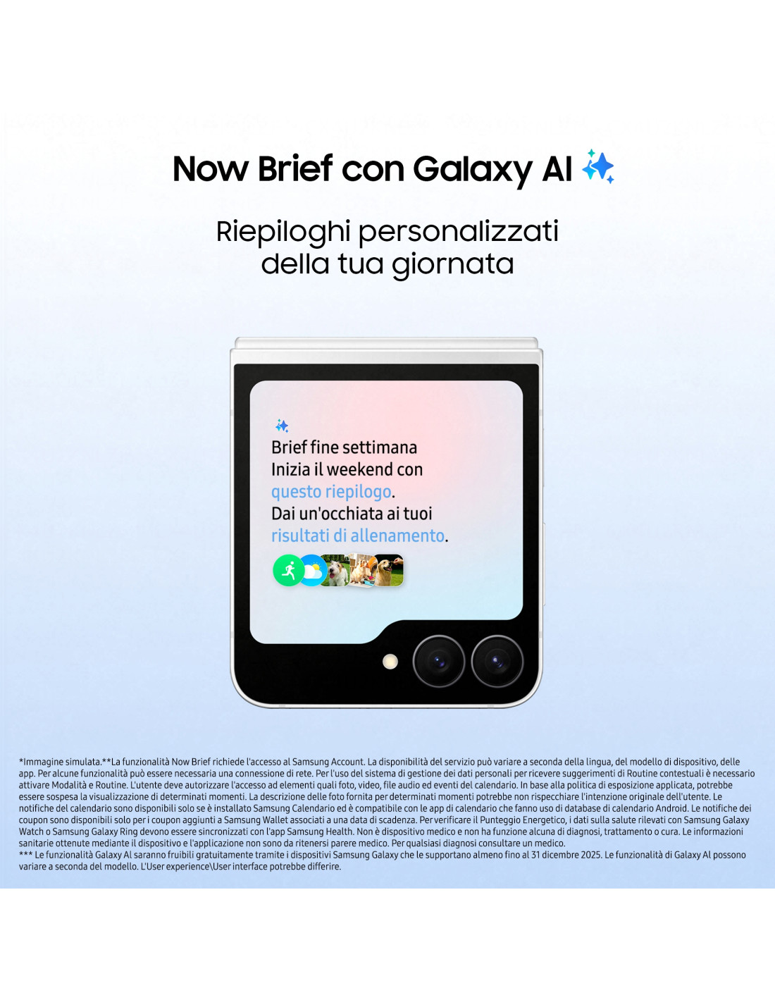 Ricevi un riepilogo personalizzato della tua giornata da Now Brief direttamente dal display esterno. Dati personalizzati, come le più recenti condizioni meteo e il Punteggio Energetico, sono tutti disponibili a colpo docchio.