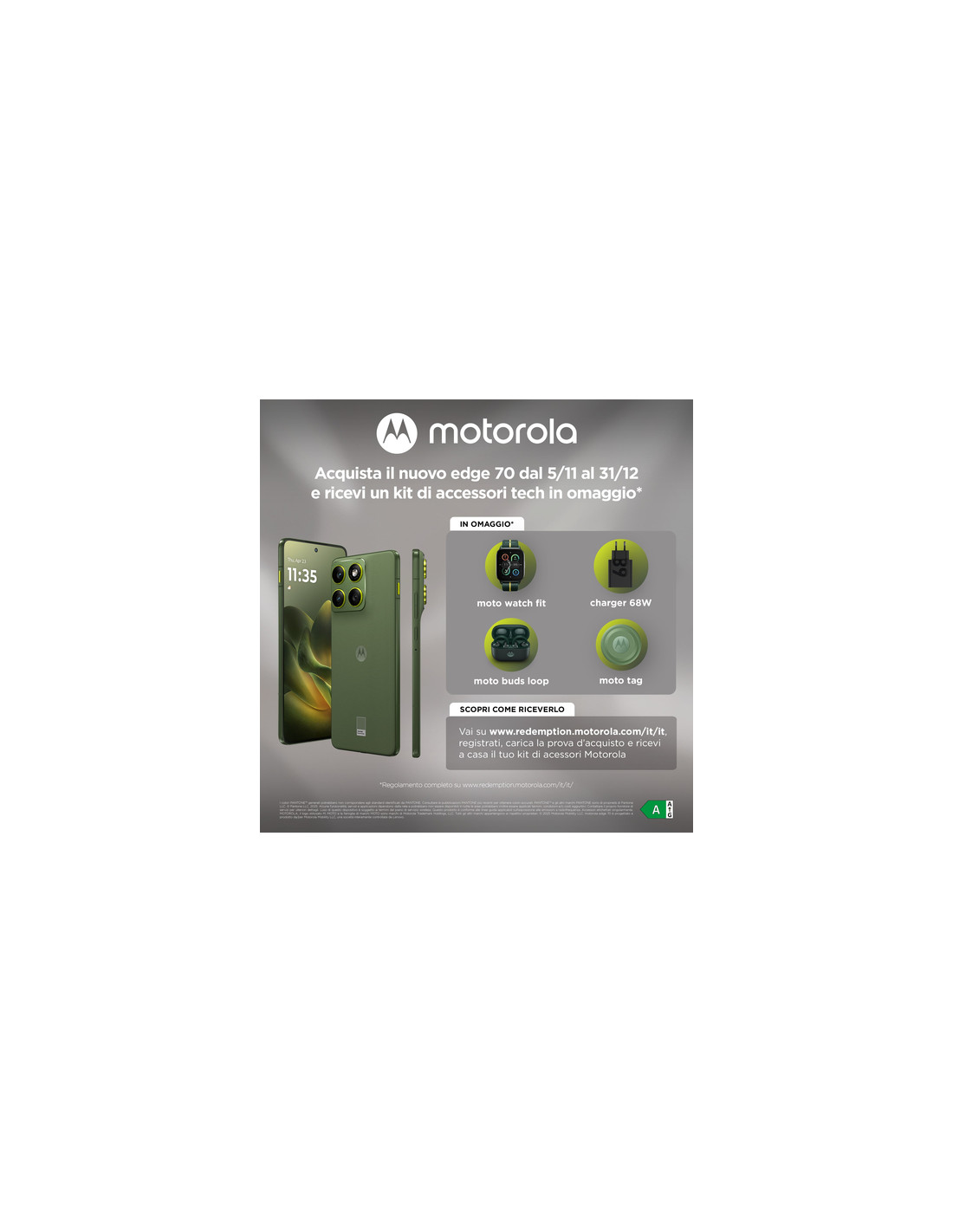 Ti presentiamo Motorola Edge 70, dal design ultra sottile 5.99mm e ultra leggero 159g con protezione avanzata Military Standard e resistenza IP68 e IP69. Scatta immagini eccezionali grazie al sistema di fotocamere da 50 MP OIS e ultragrandangolare. Goditi i contenuti sull’ampio display Super HD da 6,67”. La ricarica TurboPower™ da 68W fornisce autonomia rapidamente. Prova performance rapide ed efficienti con la batteria Silicon-Carbon da 4800mAh e il processore Qualcomm Snapdragon® 7 Gen 4. Con 12GB di RAM e 512GB di memoria.