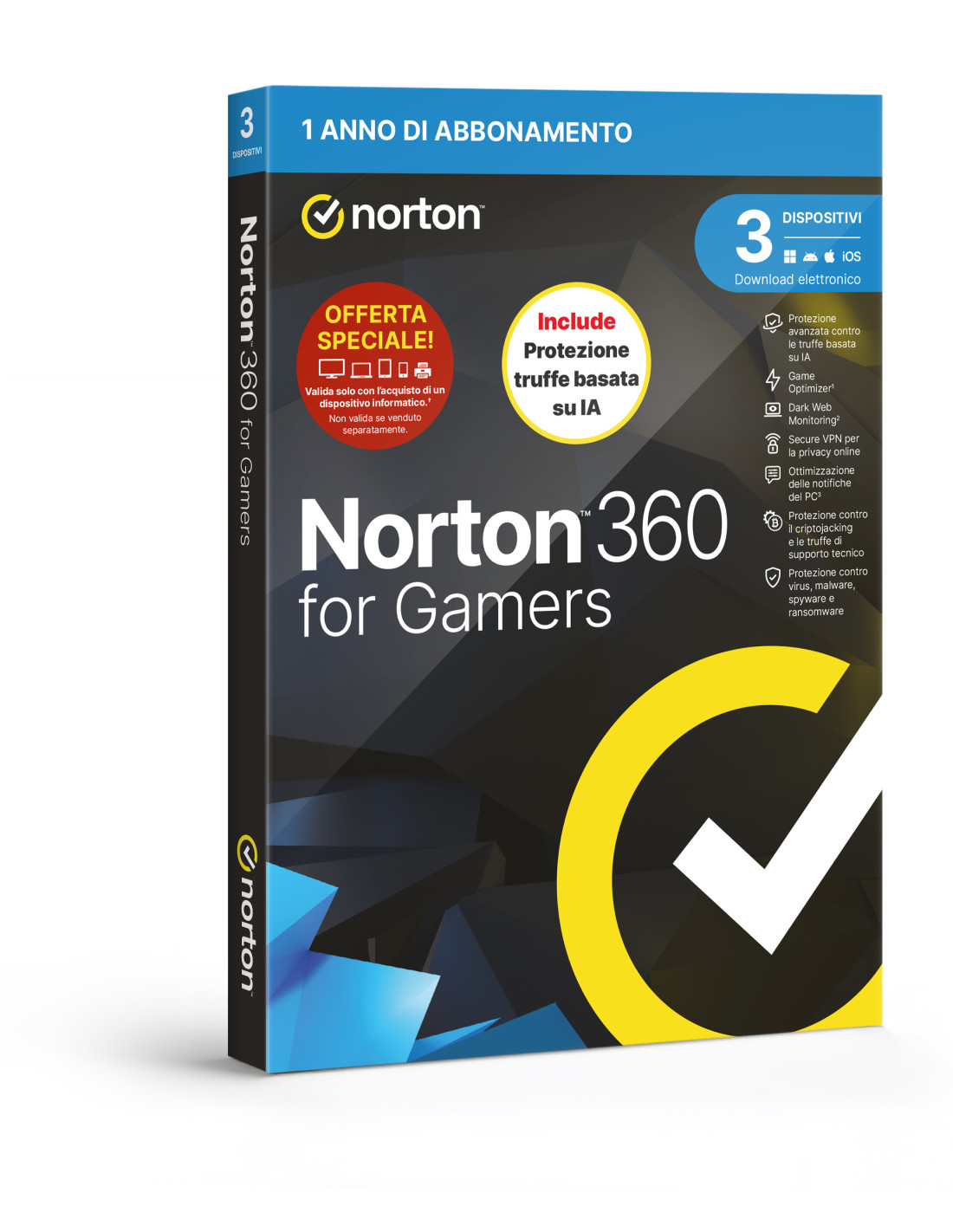 NORTON 360 FOR GAMERS 2026-ANTITRUFFA- ATTACH - 3 DISPOSITIVI 12 MESI 50GB - IT BOX