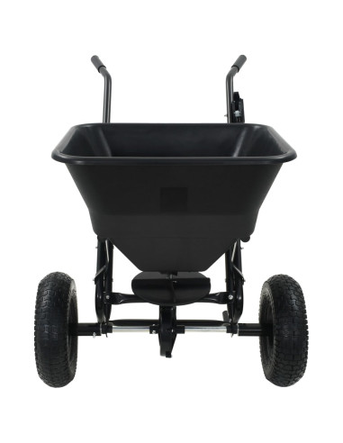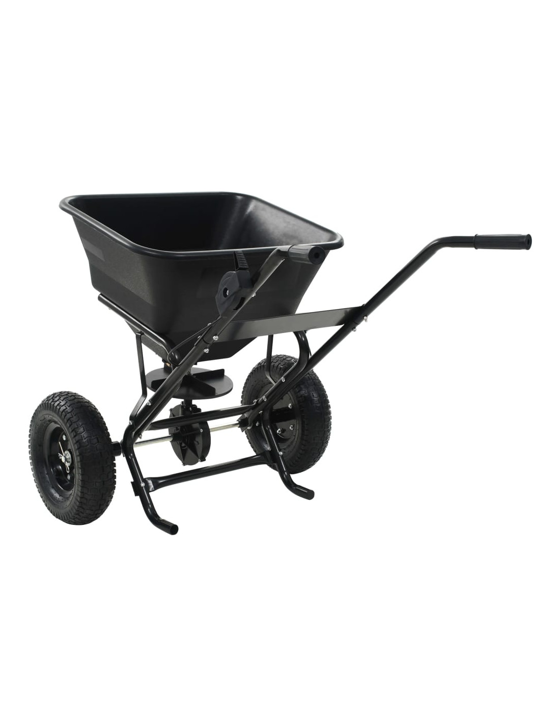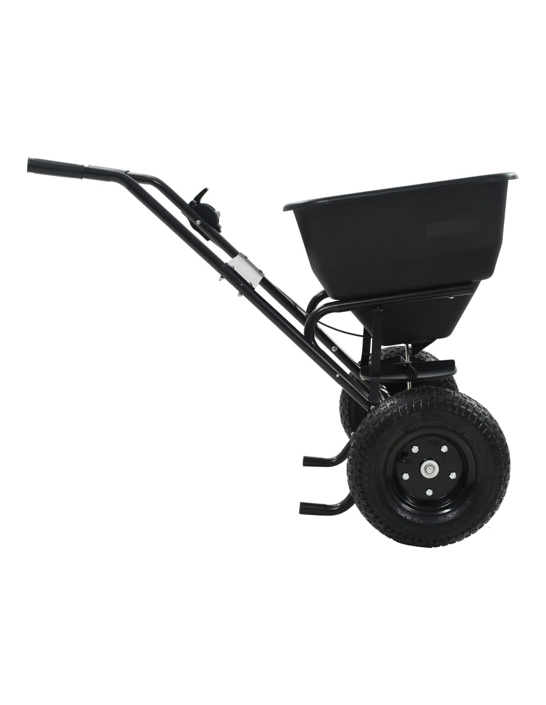 Questo robusto spargitore è dotato di un telaio in acciaio tubolare, robusto e resistente alla corrosione. Include anche una grande tramoggia in PVC per il trasporto di sale, semi o fertilizzanti. Lo spargitore da giardino è stato progettato per fornire la perfetta dispersione dei semi, senza spargerne troppi o troppo pochi, e facendo sì che l'erba possa crescere al meglio senza essere né troppo densa né troppo diradata. Aiuta anche a distribuire il fertilizzante in modo uniforme per ridurre il rischio di bruciare il terreno. Lo spargisale viene fornito con un regolatore operato da un cavo lungo la maniglia, con il quale è possibile regolare facilmente la velocità di spargimento per una maggiore efficienza. Le due ruote, grandi e larghe, e la lunga impugnatura aiutano a manovrare facilmente questo attrezzo nel giardino.
