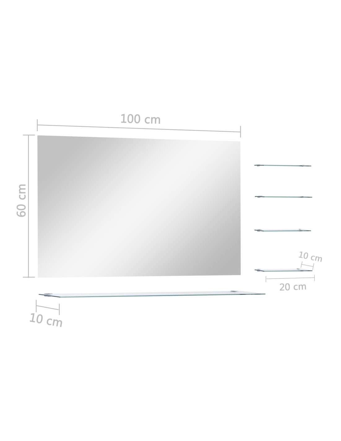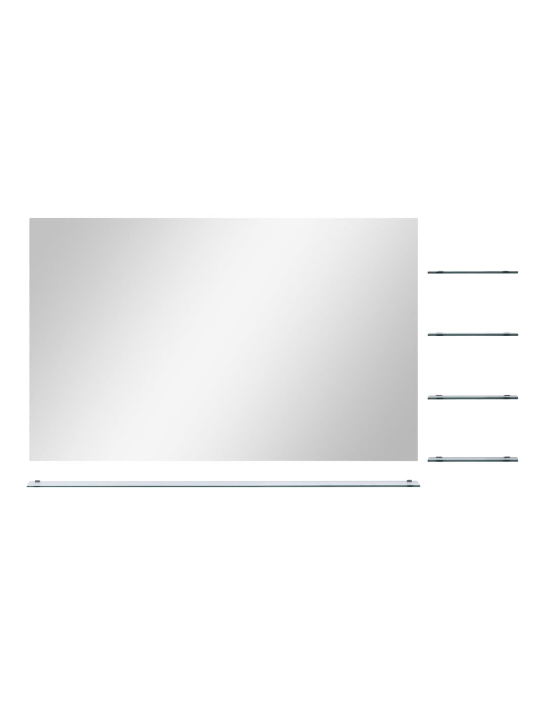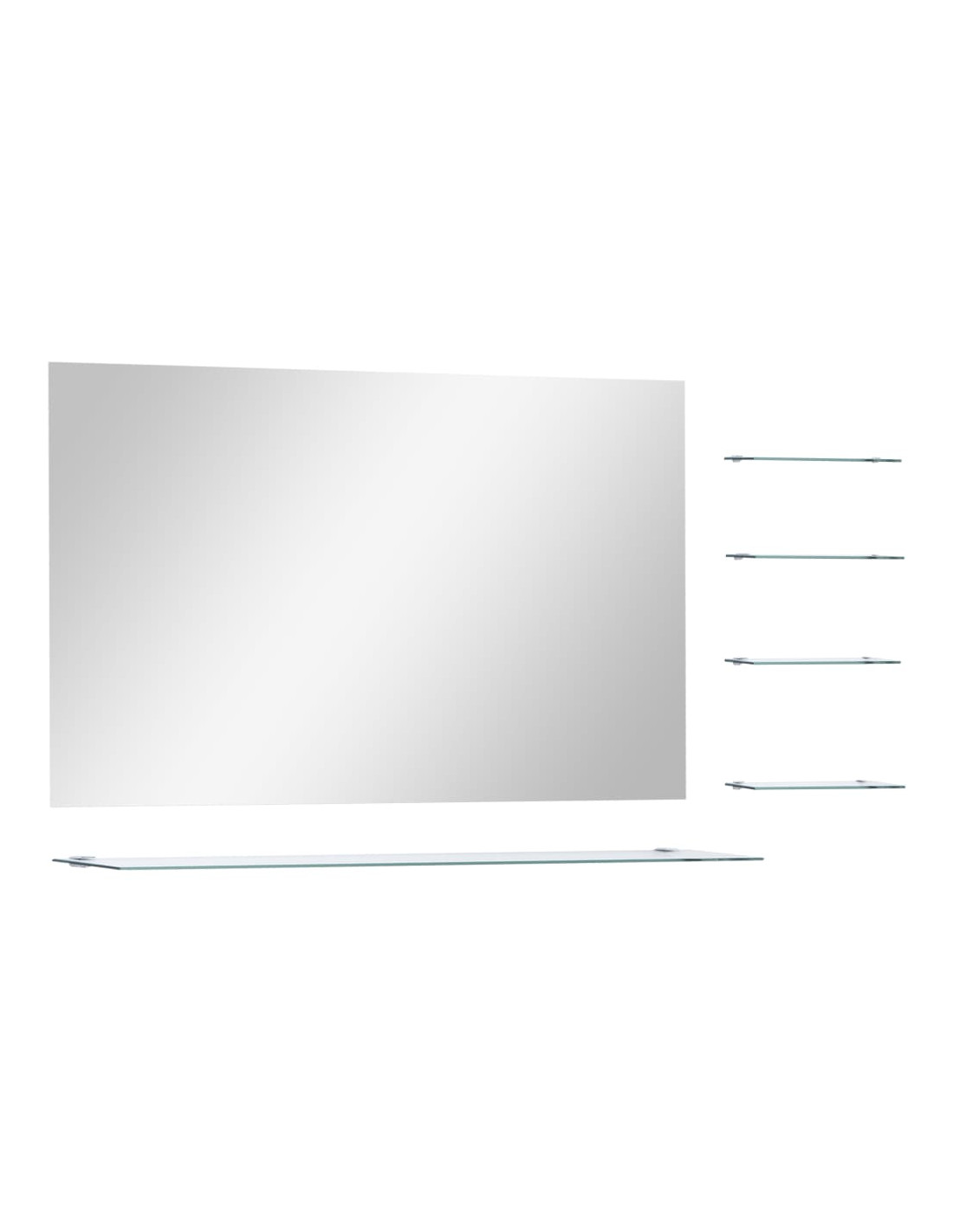 Realizzato in vetro temperato di qualità, questo arredo da bagno è resistente e facile da pulire. Lo specchio rettangolare con cornice, dal design minimalista e contemporaneo, arricchisce qualsiasi ambiente, mentre i quattro piccoli ripiani e lo scaffale grande lo rendono un elemento pratico per avere più spazio. È possibile conservare ed esporre elementi decorativi o essenziali tenendoli in ordine e a portata di mano.