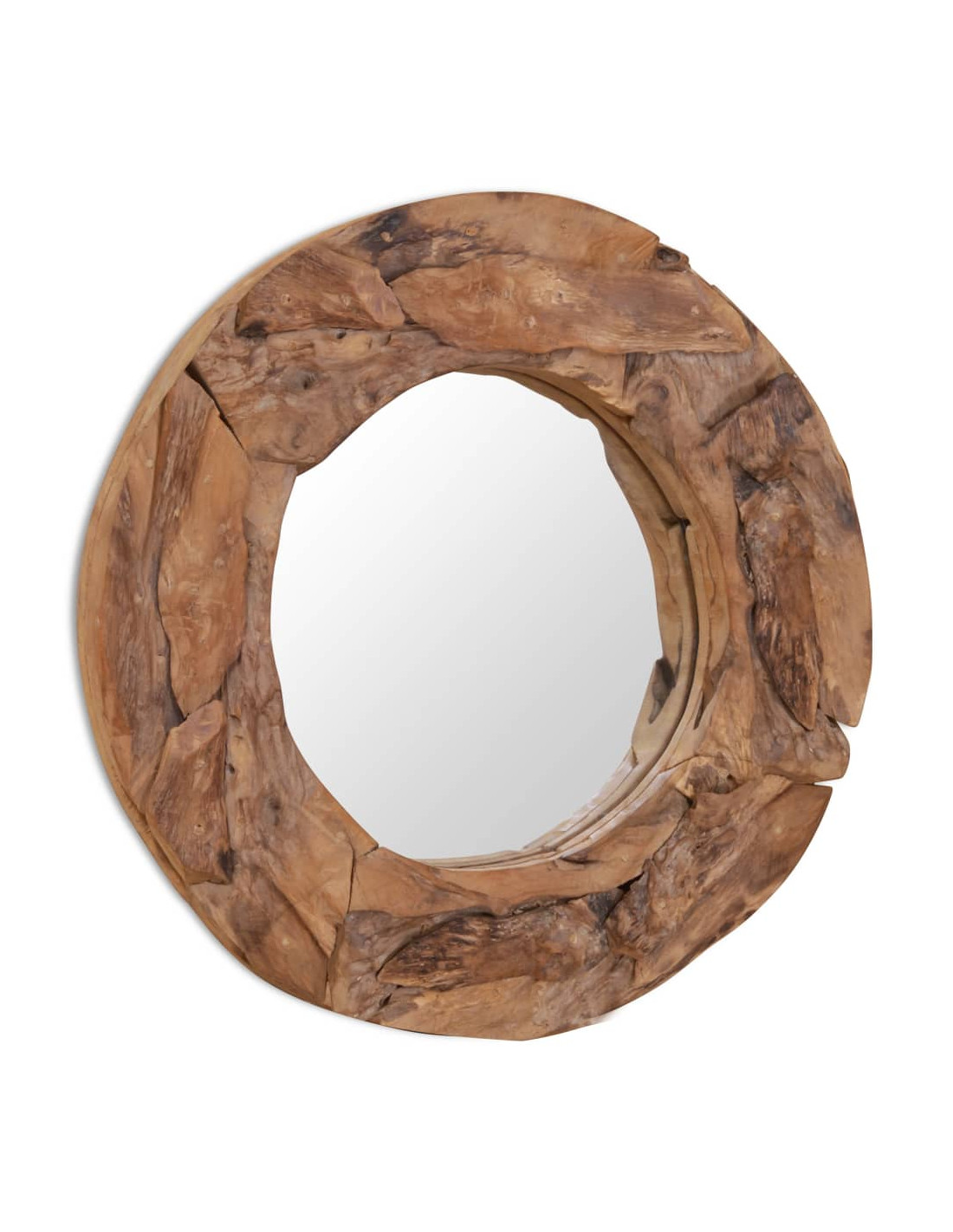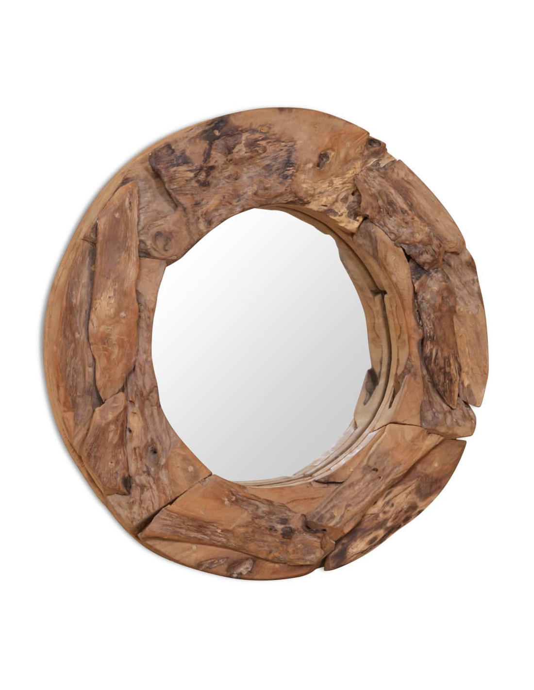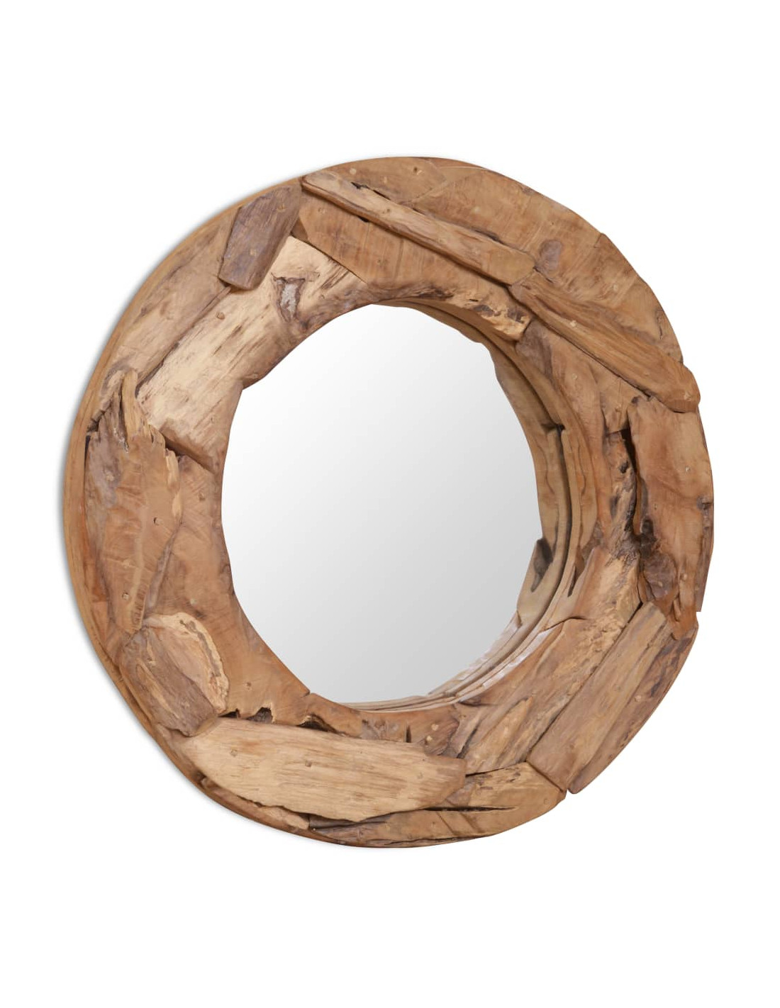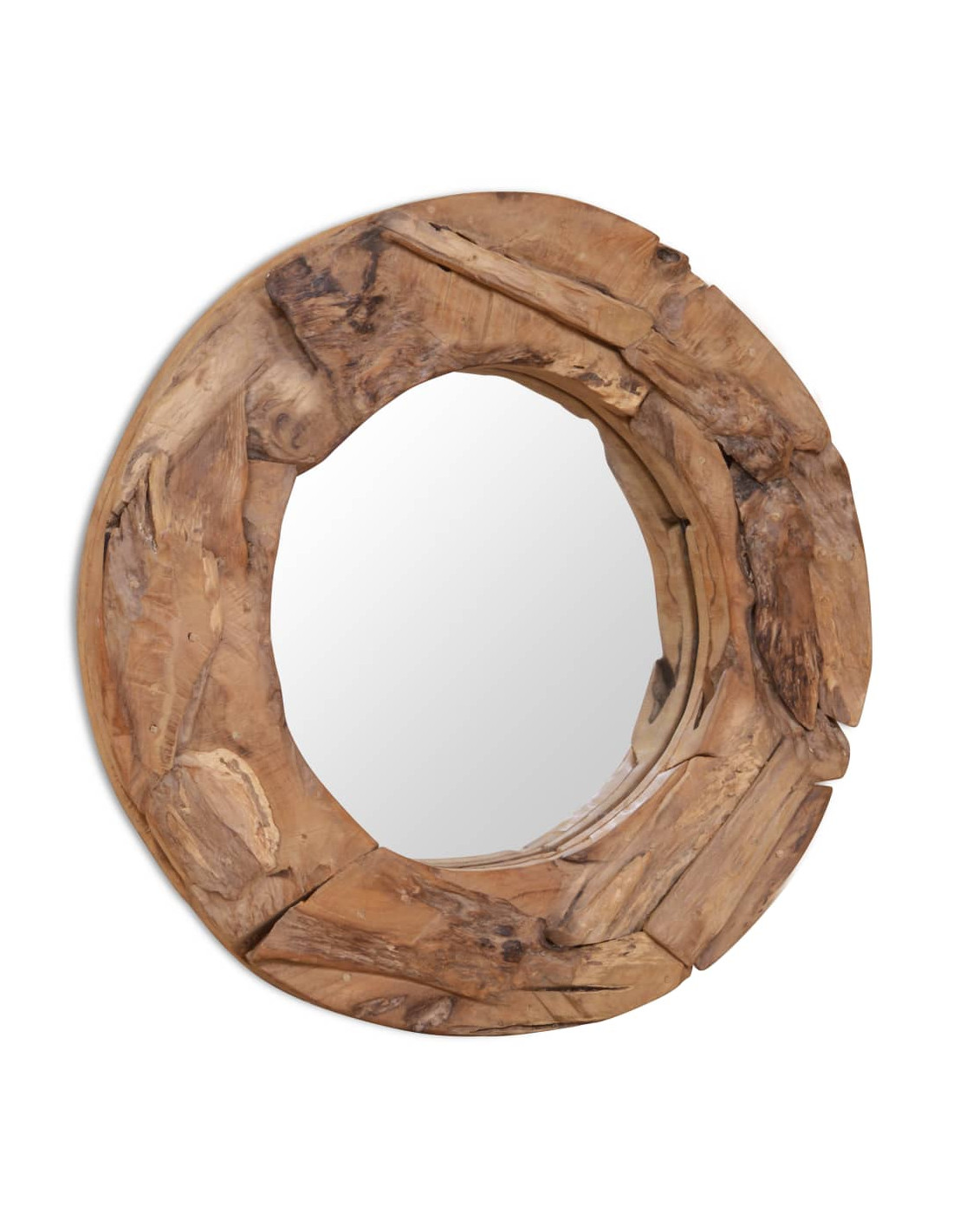 Lo specchio è realizzato in legno massello di teak disposto in modo irregolare e casuale, ciò conferisce lo stile rustico dello specchio. Sarà perfetto in ogni stanza della casa e potrà essere collocato anche in bagno.