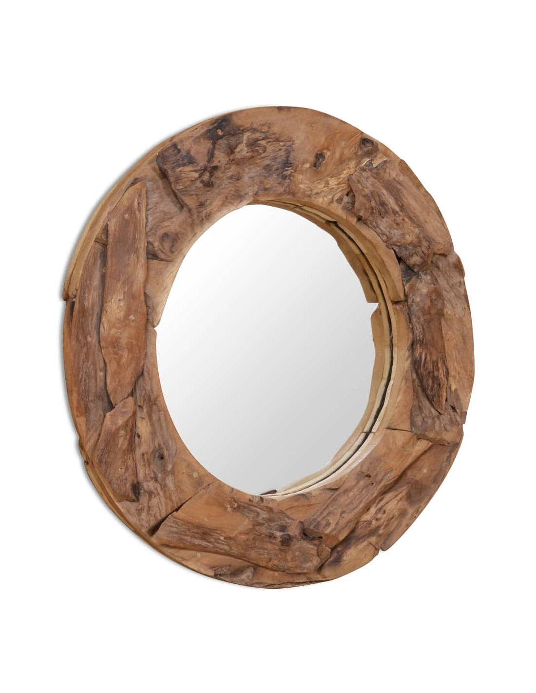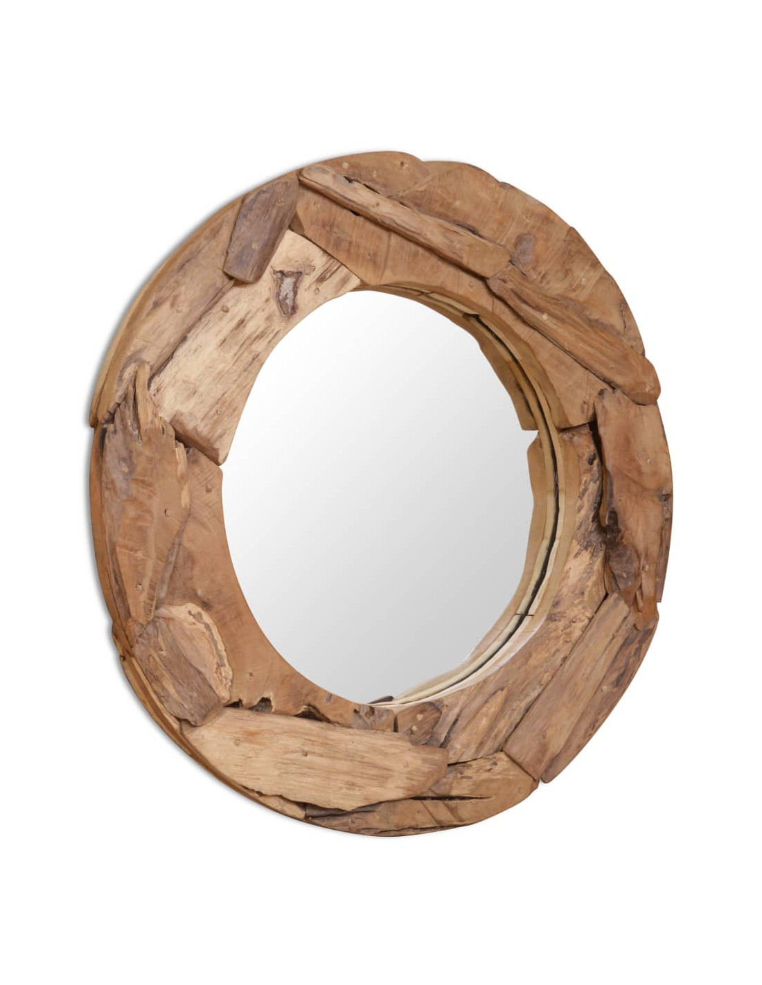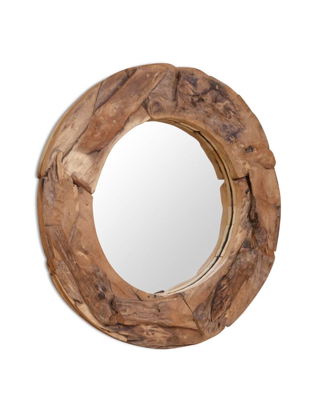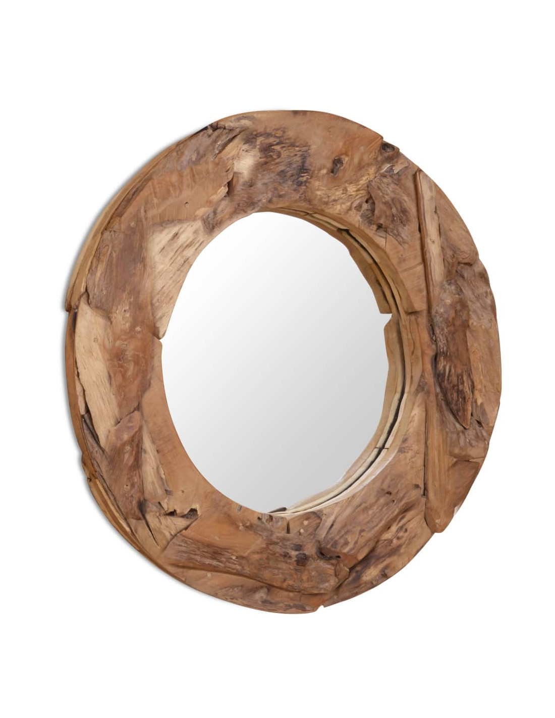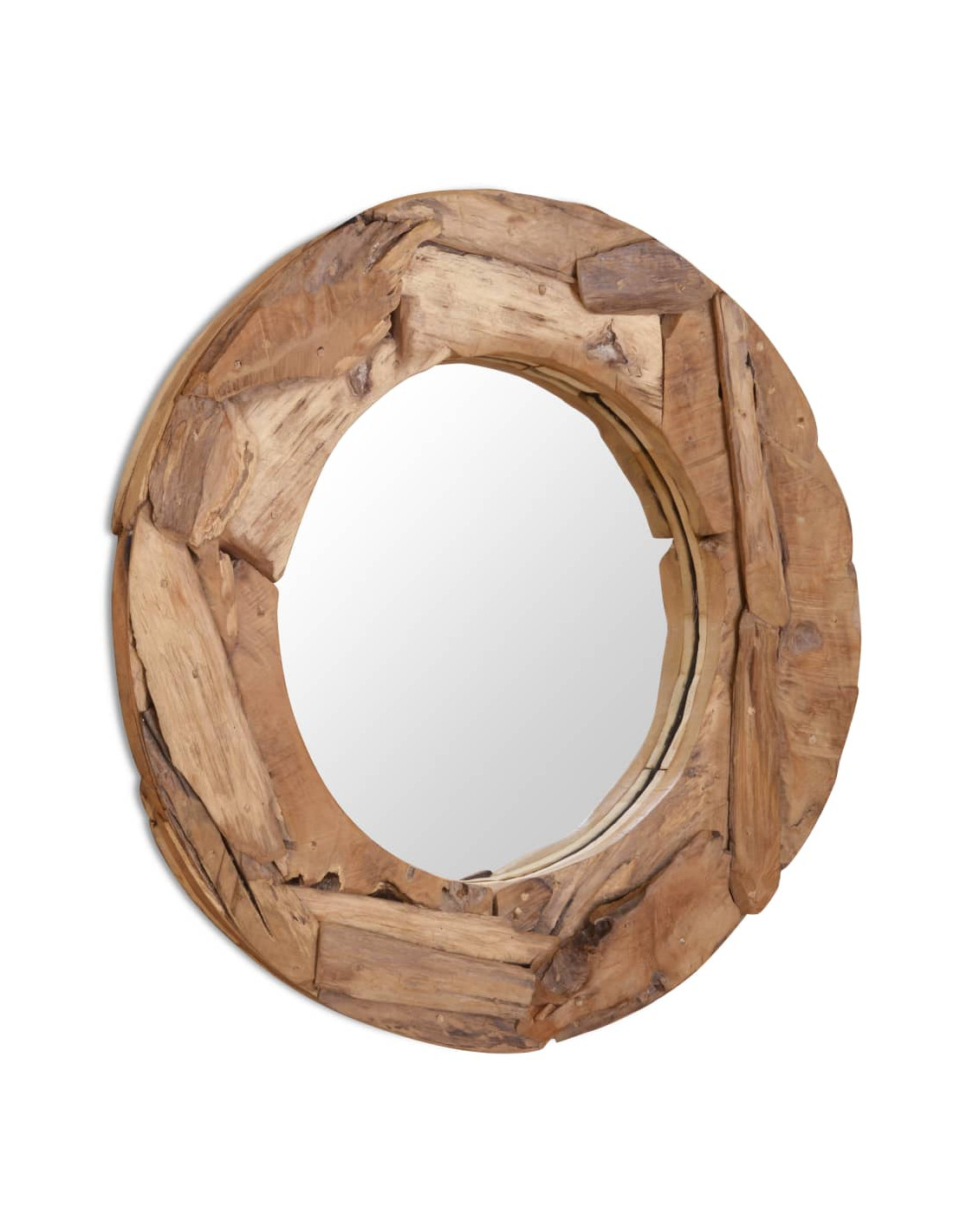 Lo specchio è realizzato in legno massello di teak disposto in modo irregolare e casuale, ciò conferisce lo stile rustico dello specchio. Sarà perfetto in ogni stanza della casa e potrà essere collocato anche in bagno.