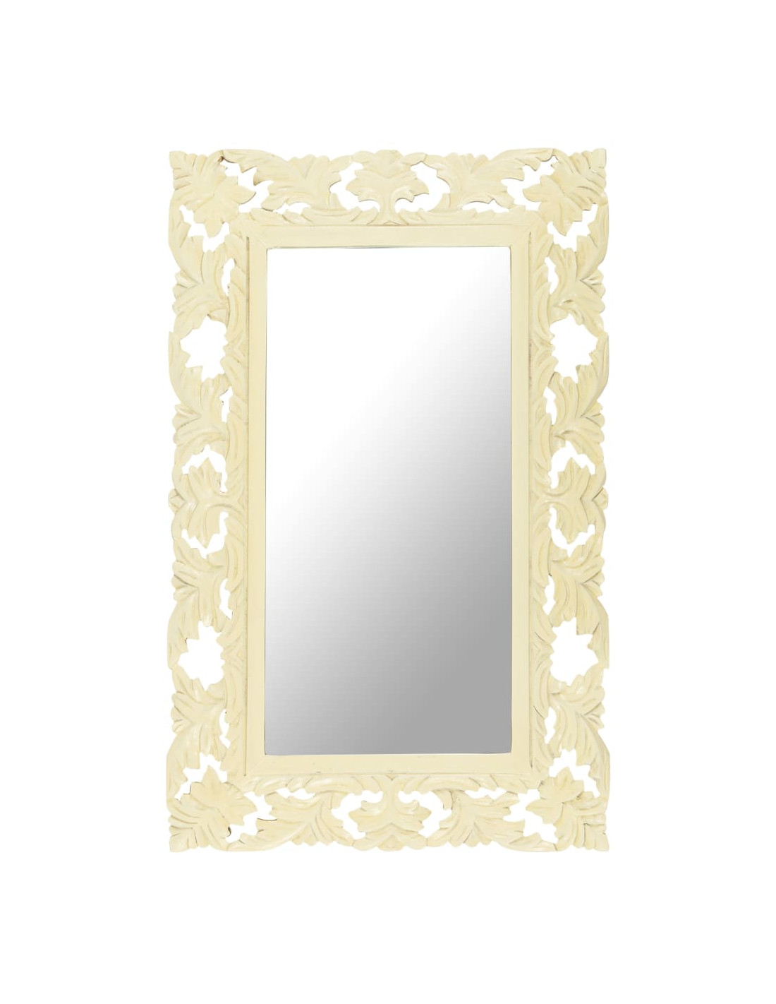Il legno massello di mango è un legno duro tropicale. Ha la forza di sopportare il peso e resiste all'usura del tempo. Inoltre, la squisita fattura e le belle venature del legno rendono ogni specchio leggermente diverso dagli altri. Il motivo intagliato a mano aggiunge bellezza allo specchio.