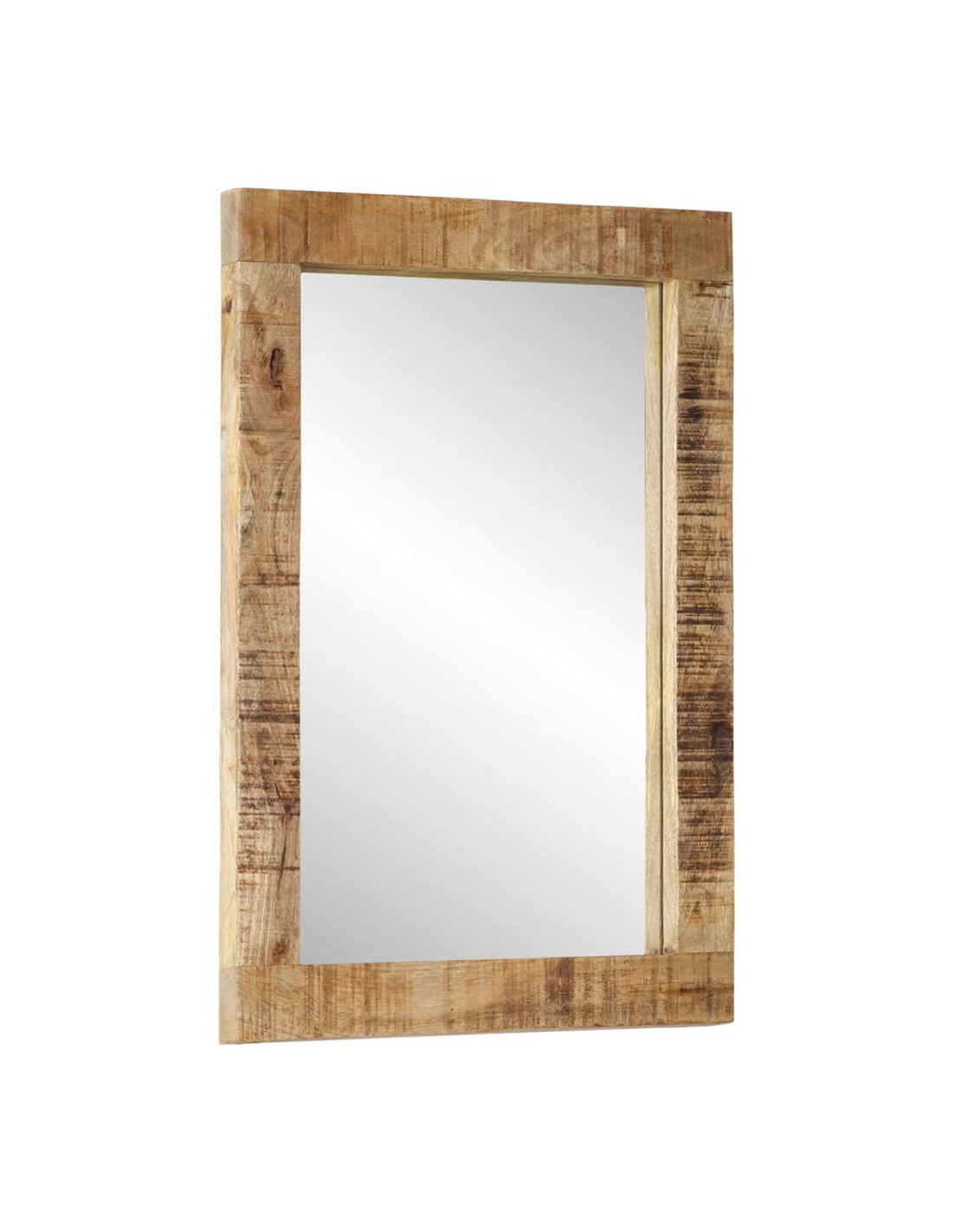 - Legno massello di mango: Il legno massello di mango è un legno duro tropicale resistente, che dà vita a mobili robusti. Le belle venature del legno rendono ogni pezzo d'arredamento leggermente diverso dall'altro. La struttura in legno massello di mango dona allo specchio un fascino rustico e ne garantisce la durata.