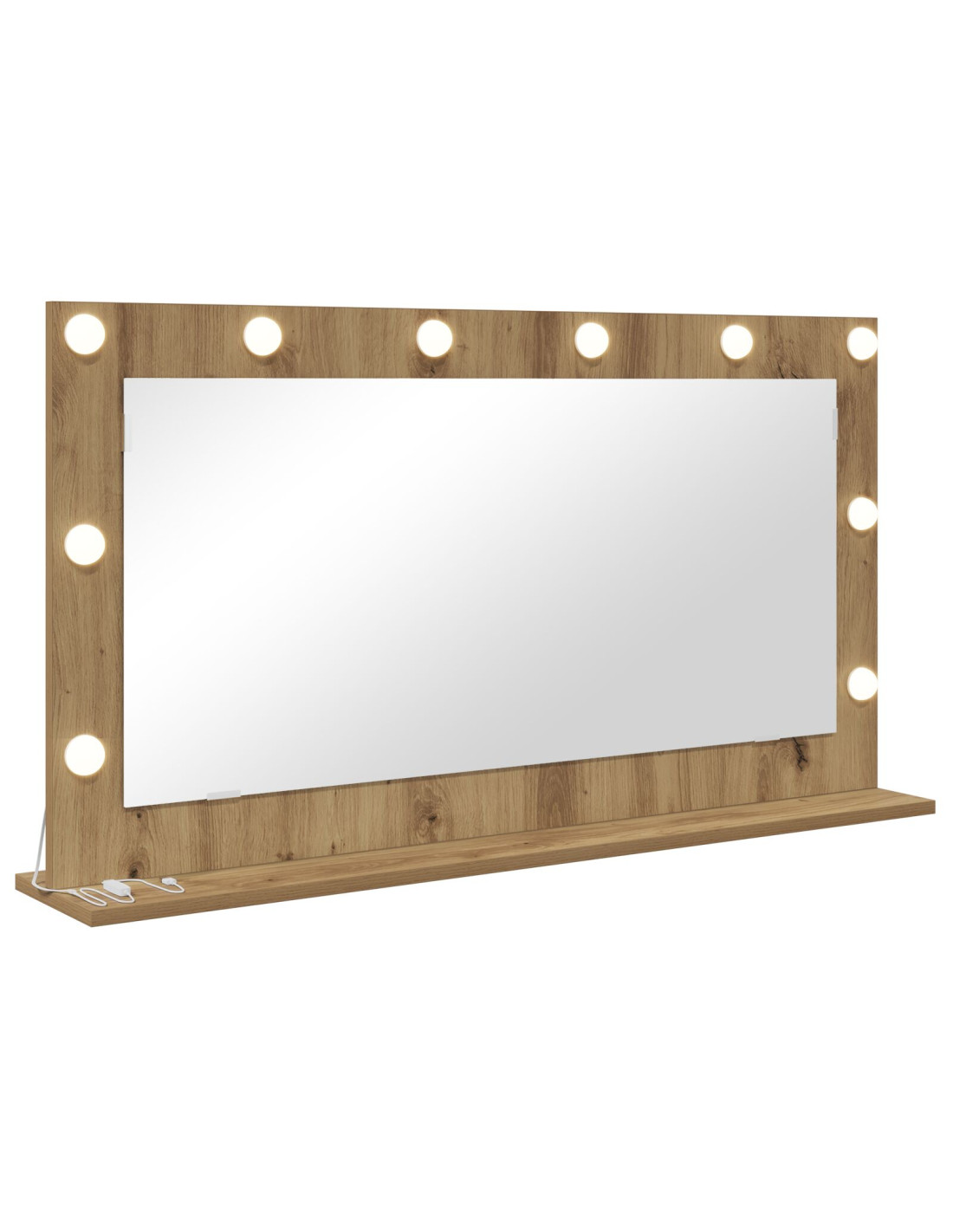 - Materiali top: Questo specchio LED da trucco è realizzato con vetro e legno ingegnerizzato, offrendo look elegante e resistenza. Il vetro assicura una superficie riflettente perfetta, mentre la base in legno garantisce solidità, rendendolo un'opzione robusta per l'uso quotidiano.