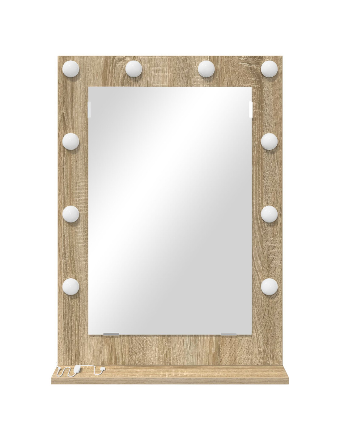 - Materiali top: Questo specchio LED da trucco è realizzato con vetro e legno ingegnerizzato, offrendo look elegante e resistenza. Il vetro assicura una superficie riflettente perfetta, mentre la base in legno garantisce solidità, rendendolo un'opzione robusta per l'uso quotidiano.