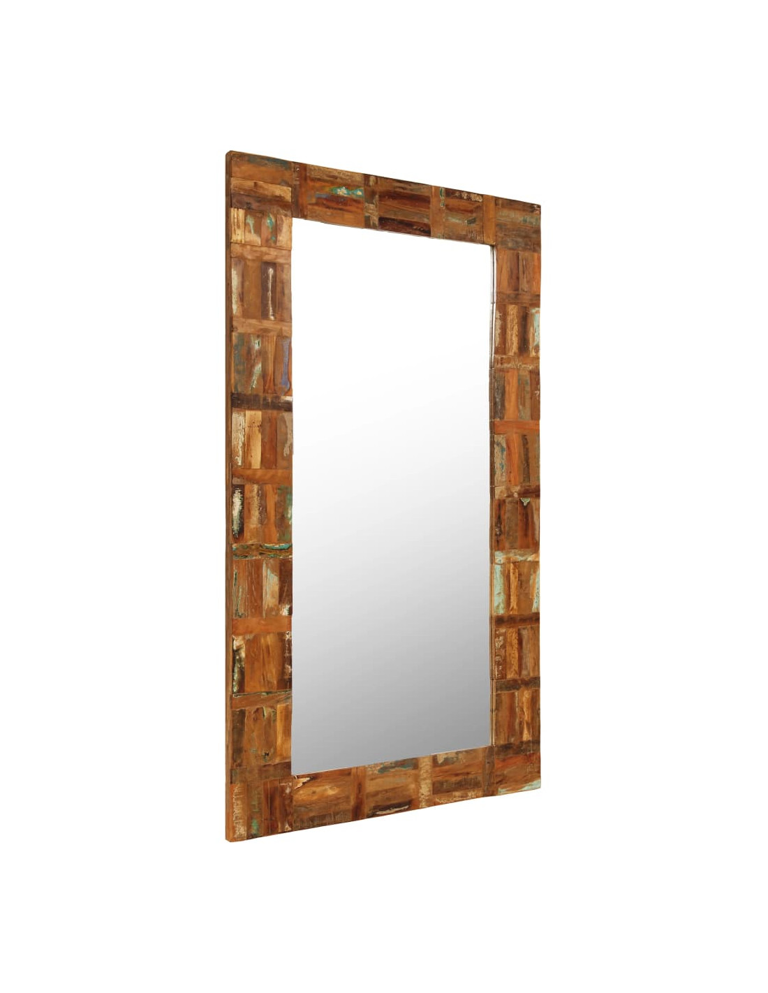 Questo specchio è realizzato in legno massello di recupero che proviene da travetti, pavimenti e travi di sostegno di vecchi edifici che sono stati demoliti, e può essere costituito da diversi tipi di legno come il pino, il teak, il faggio, la quercia, il cedro, il mango, l'acacia, ecc. Ciò significa che il legno di recupero mantiene tutte le caratteristiche di questi diversi tipi di legno. Il legno di recupero è già invecchiato, stagionato ed essiccato, quindi non subisce restringimenti o deformazioni. La belle venature del legno rendono ogni pezzo d'arredamento unico e leggermente diverso dall'altro. Segni di usura e struttura delle venature visibili sono indicativi della ricca storia del legno e conferiscono allo specchio un aspetto caldo e autentico. Ogni fase del processo viene effettuata con la massima cura, che si tratti di ricombinazione, lucidatura, pittura o laccatura.